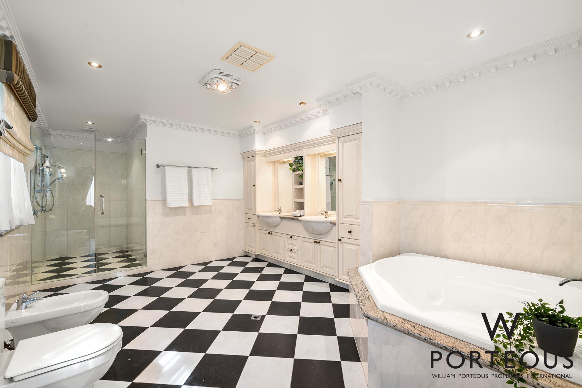 A brilliant feature of the home is the ground floor main bedroom suite. It is more than king size, with windows looking into the back yard, a very generous ensuite bathroom with twin vanities, WC, bidet, spa and separate shower. A walk-in dressing room completes the main suite.