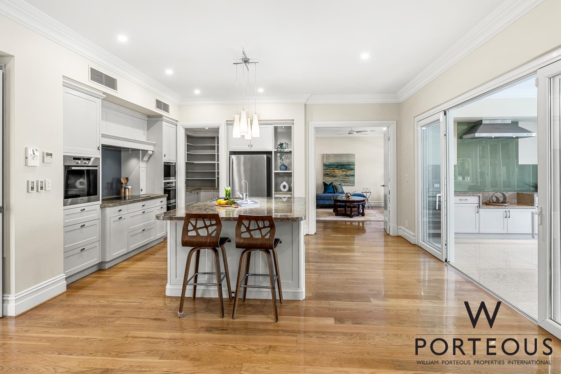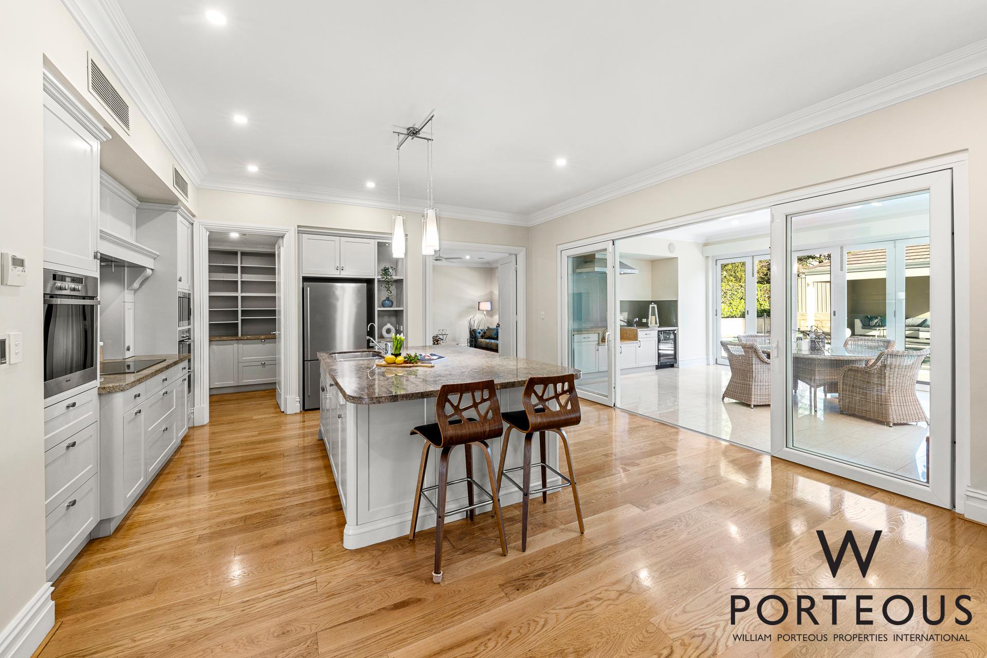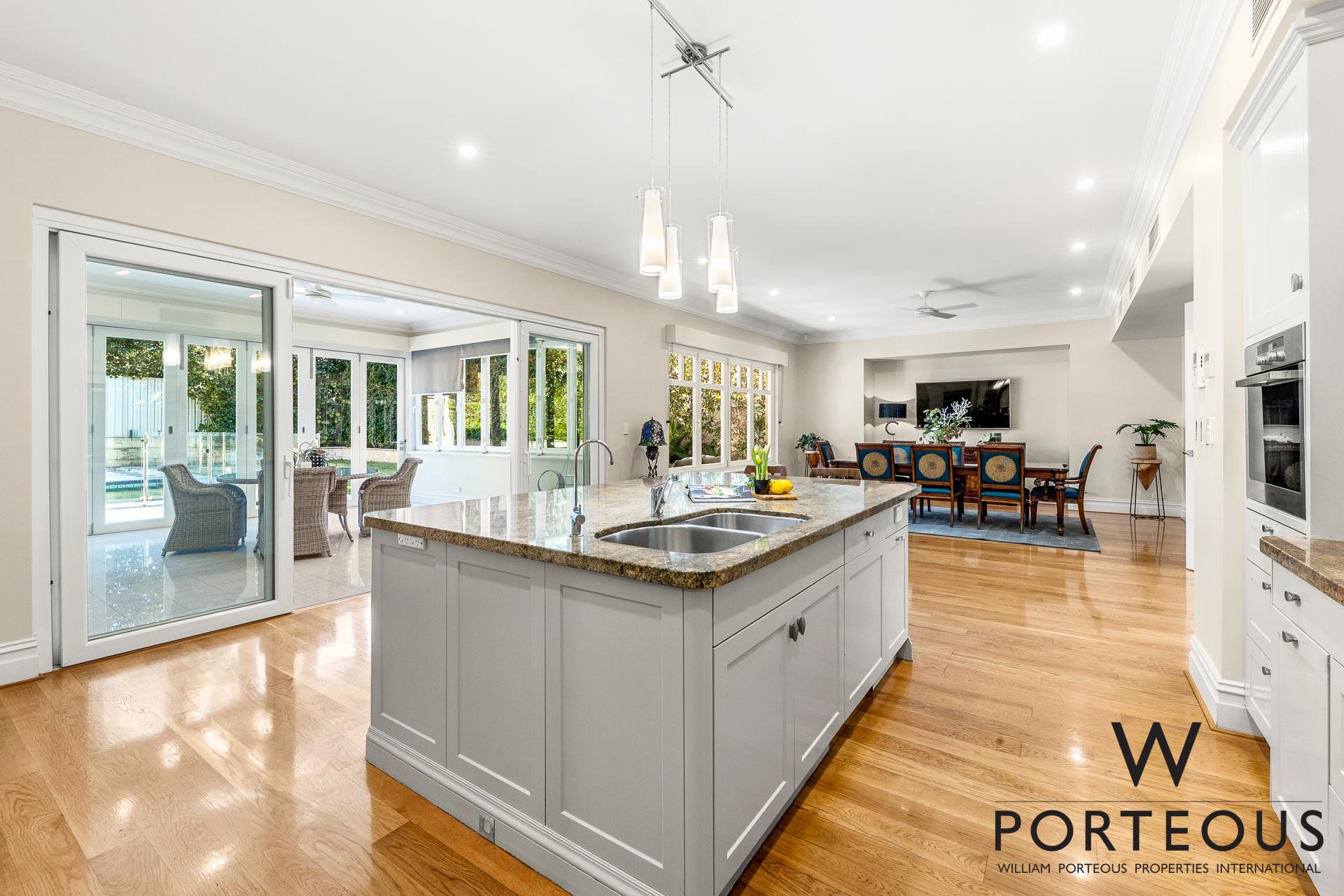 Past the classic staircase and western courtyard, you enter the expansive open-plan family area, which overlooks the delightful yard, pool and cabana beyond. The sleek kitchen incorporates granite countertops, a central island bench, glass splashbacks and a customised walk-in pantry. Premium Miele appliances include an induction cooktop, an integrated dishwasher, and microwave, steam and conventional wall ovens.