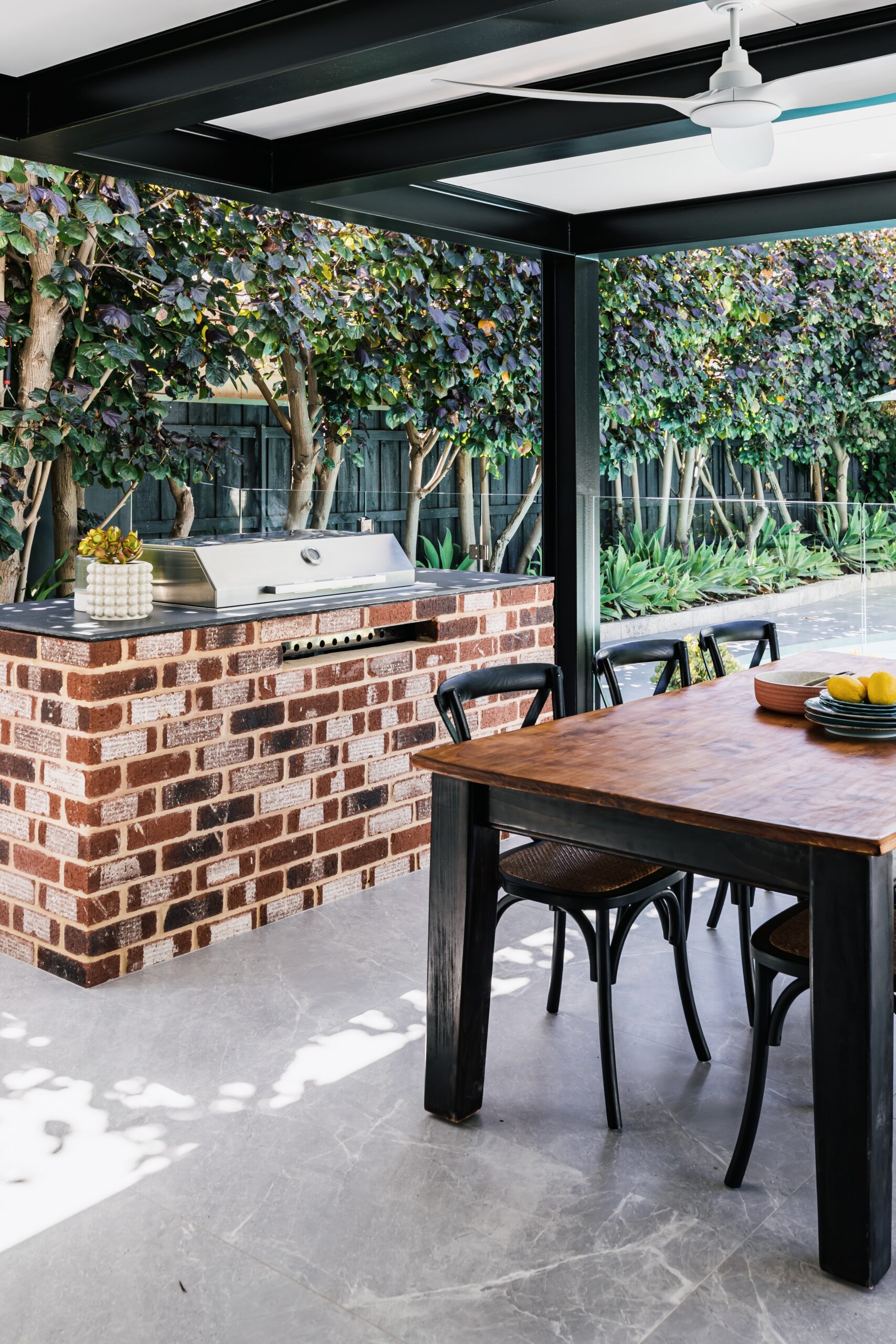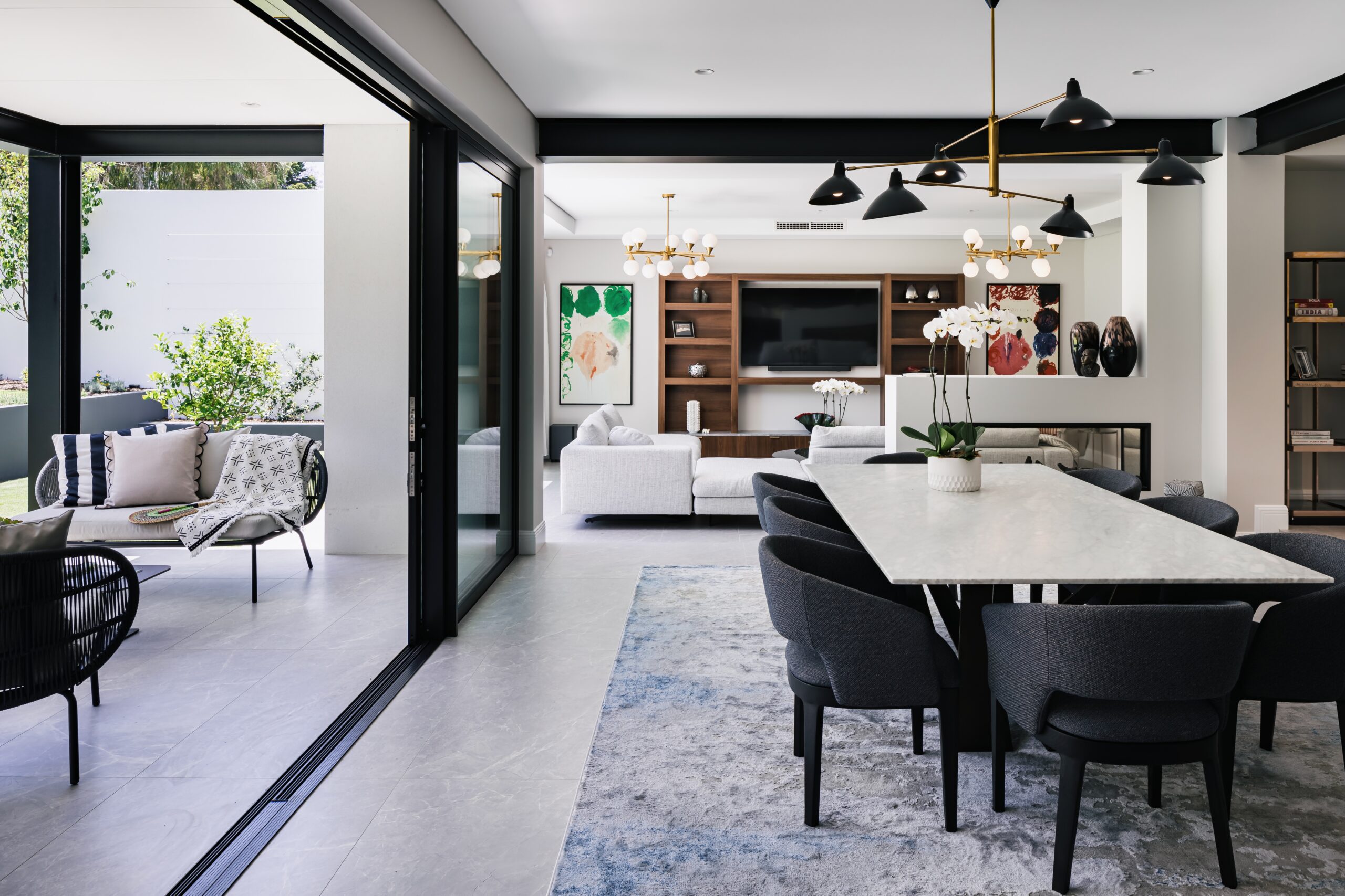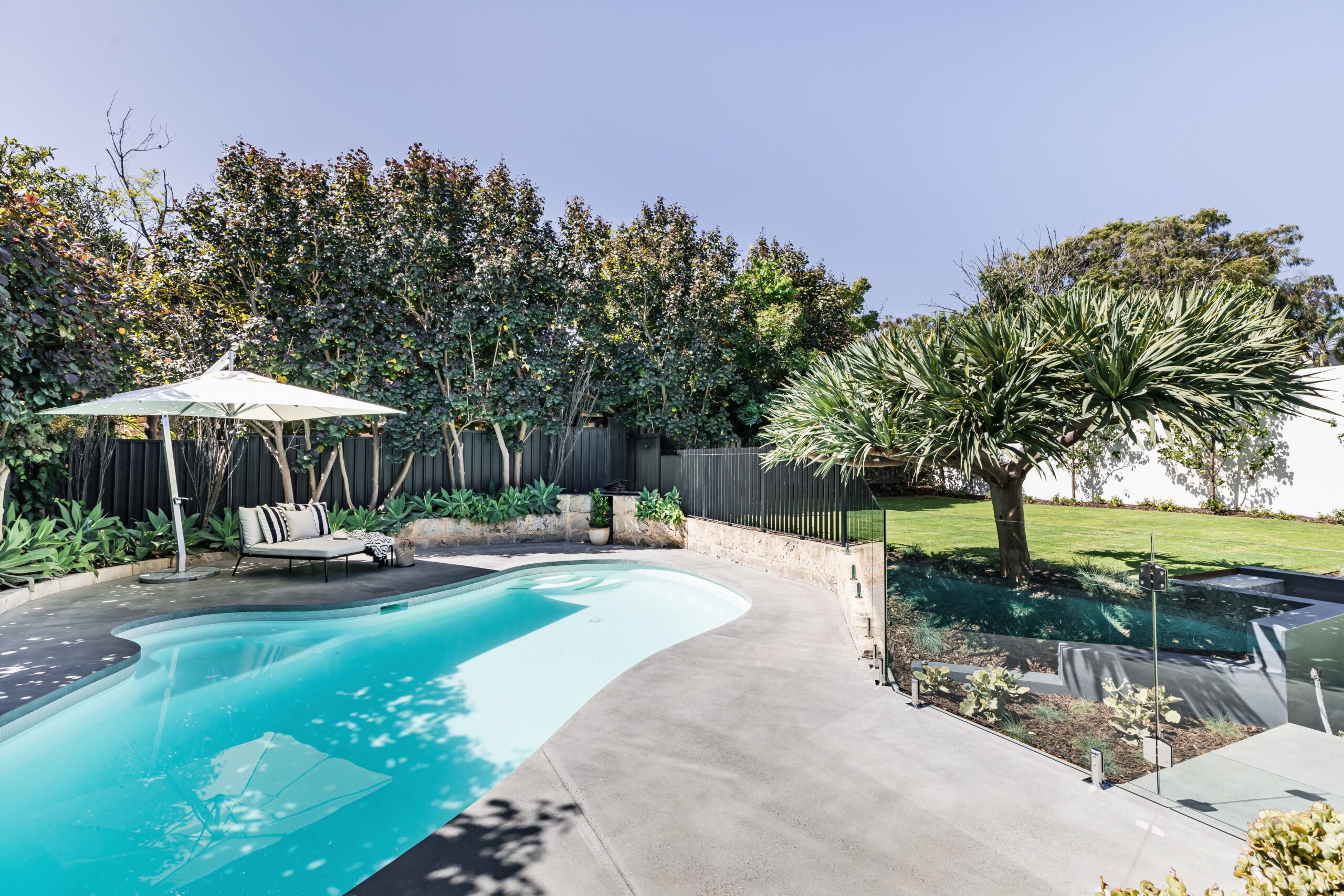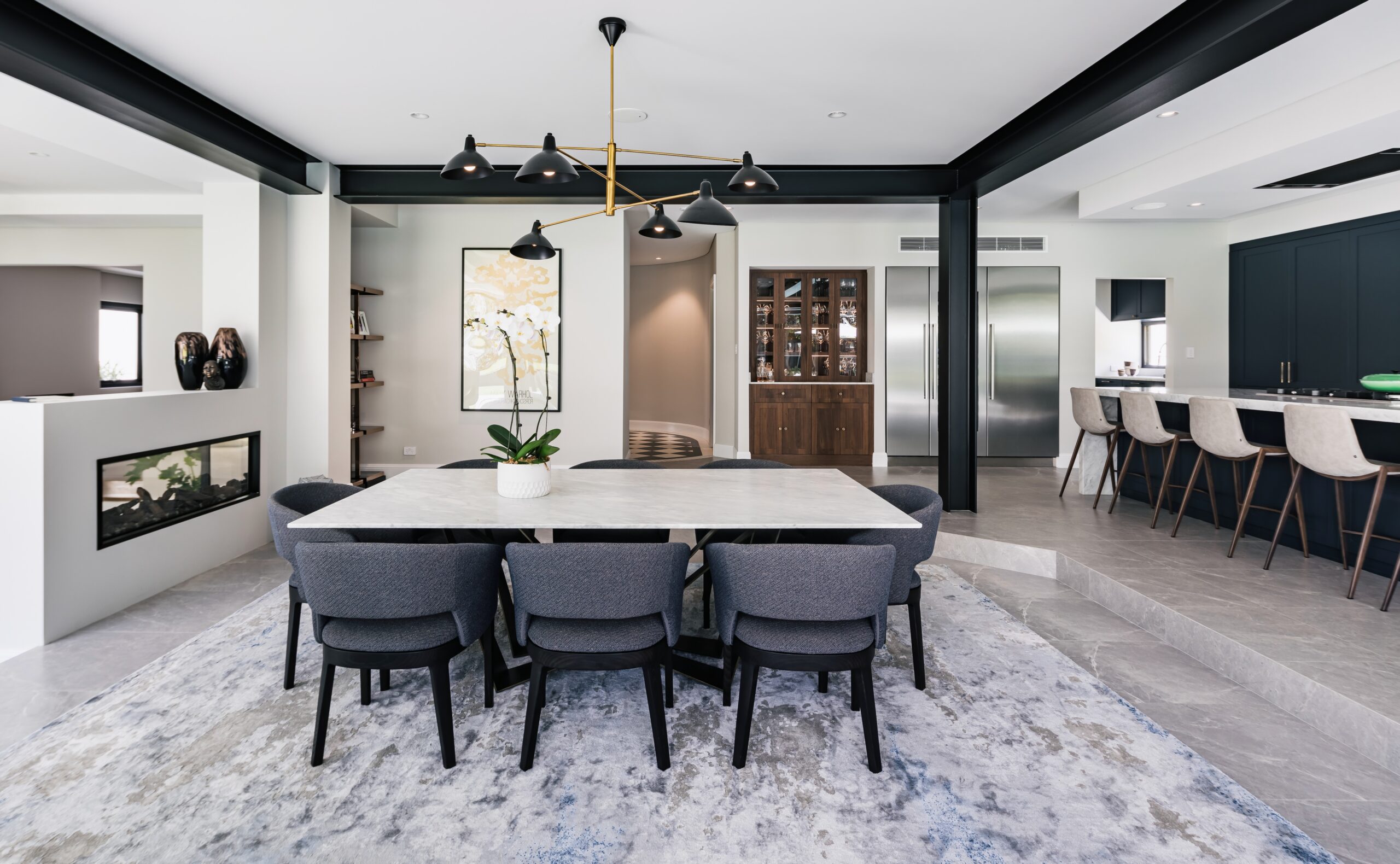 The kitchen opens to the alfresco, our door dining, living and BBQ area that in turn overlooks the sparkling crystal white in-ground pool with formed architectural grey concrete and glass fencing, lawns and garden. This whole zone is a space for cooking, entertaining friends and family, and living your best life.