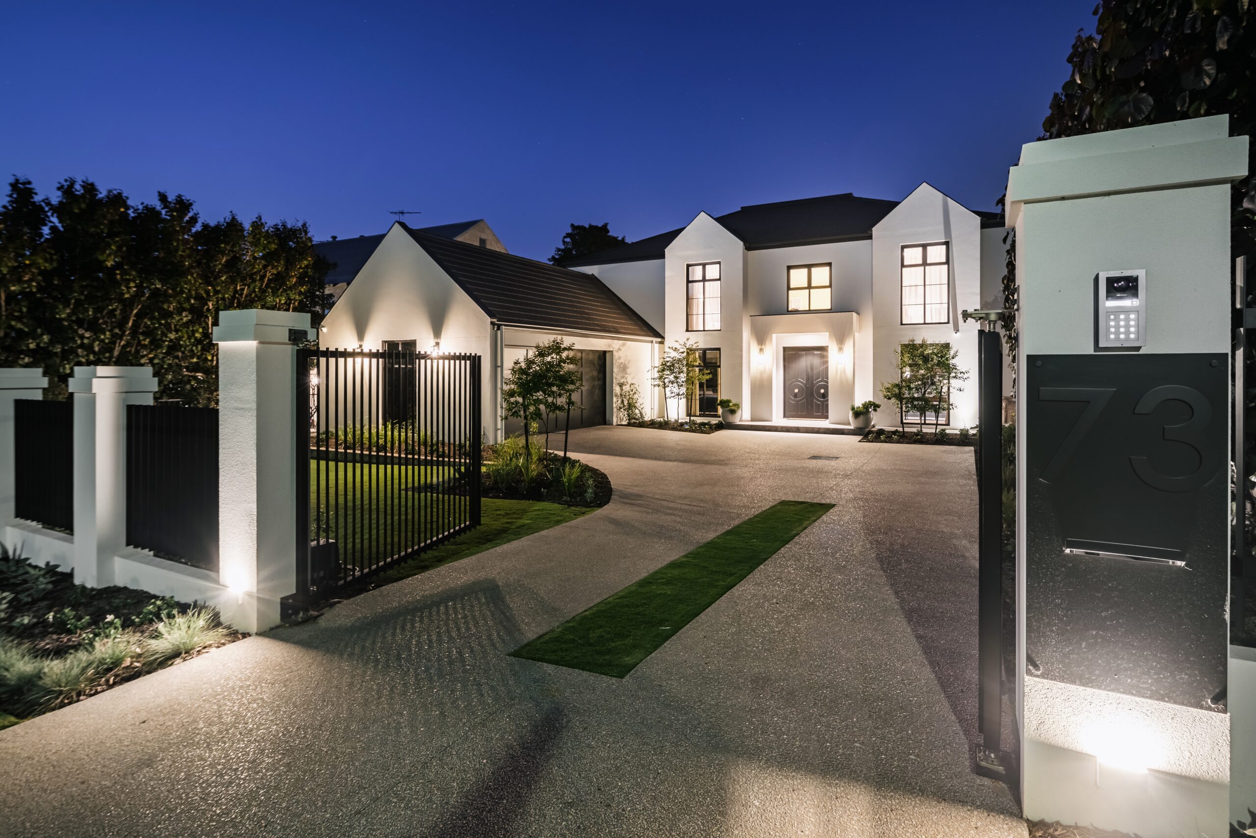 From the electric double gates and sweeping driveway through the landscaped front garden you arrive at the portico with oversized double front doors and are welcomed into an elegant entry hall. Classic chequerboard black and white marble floors, a sweeping staircase, and a beautiful pendant light are an appropriately inspiring introduction to an interior that has been carefully crafted to delight at every turn.