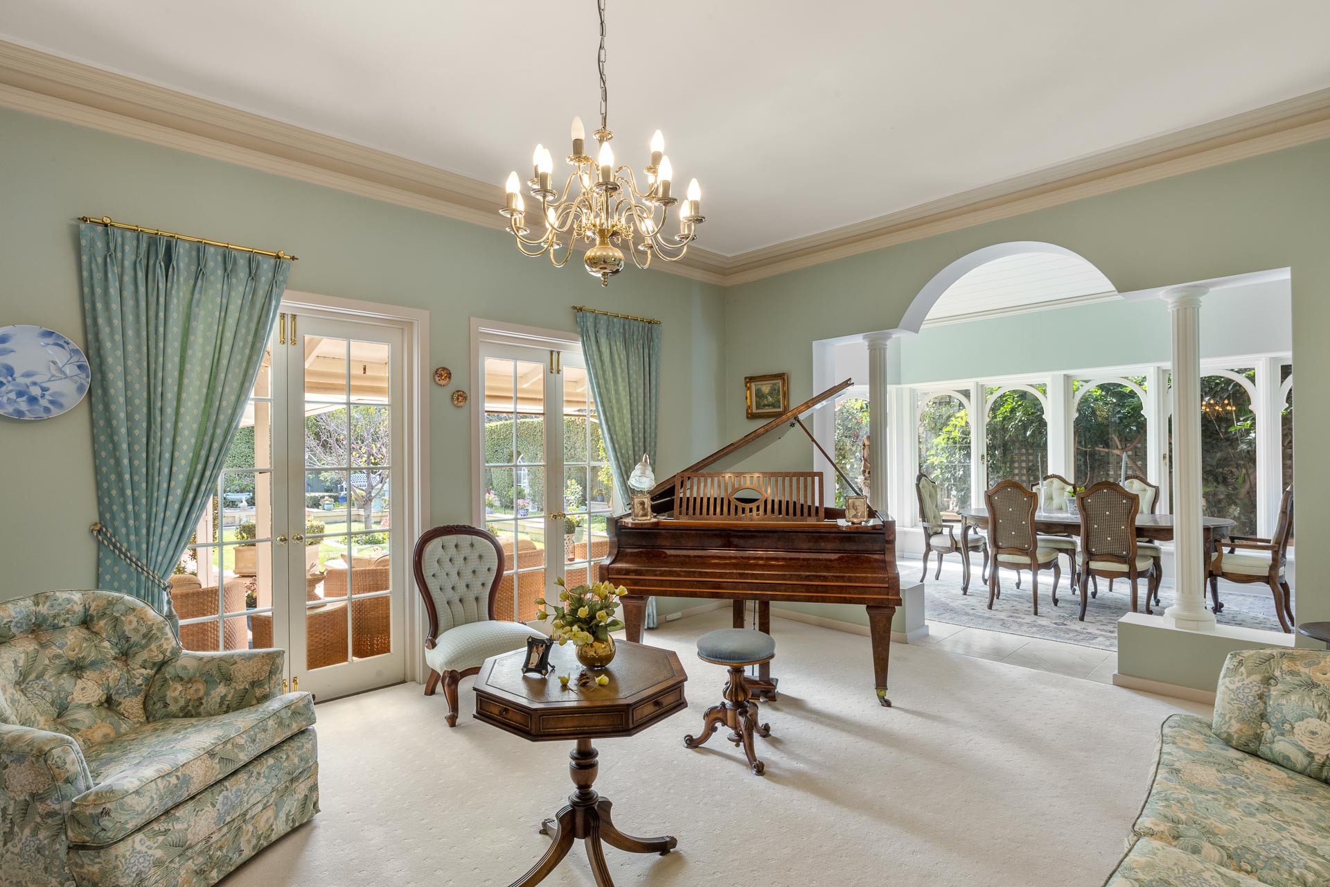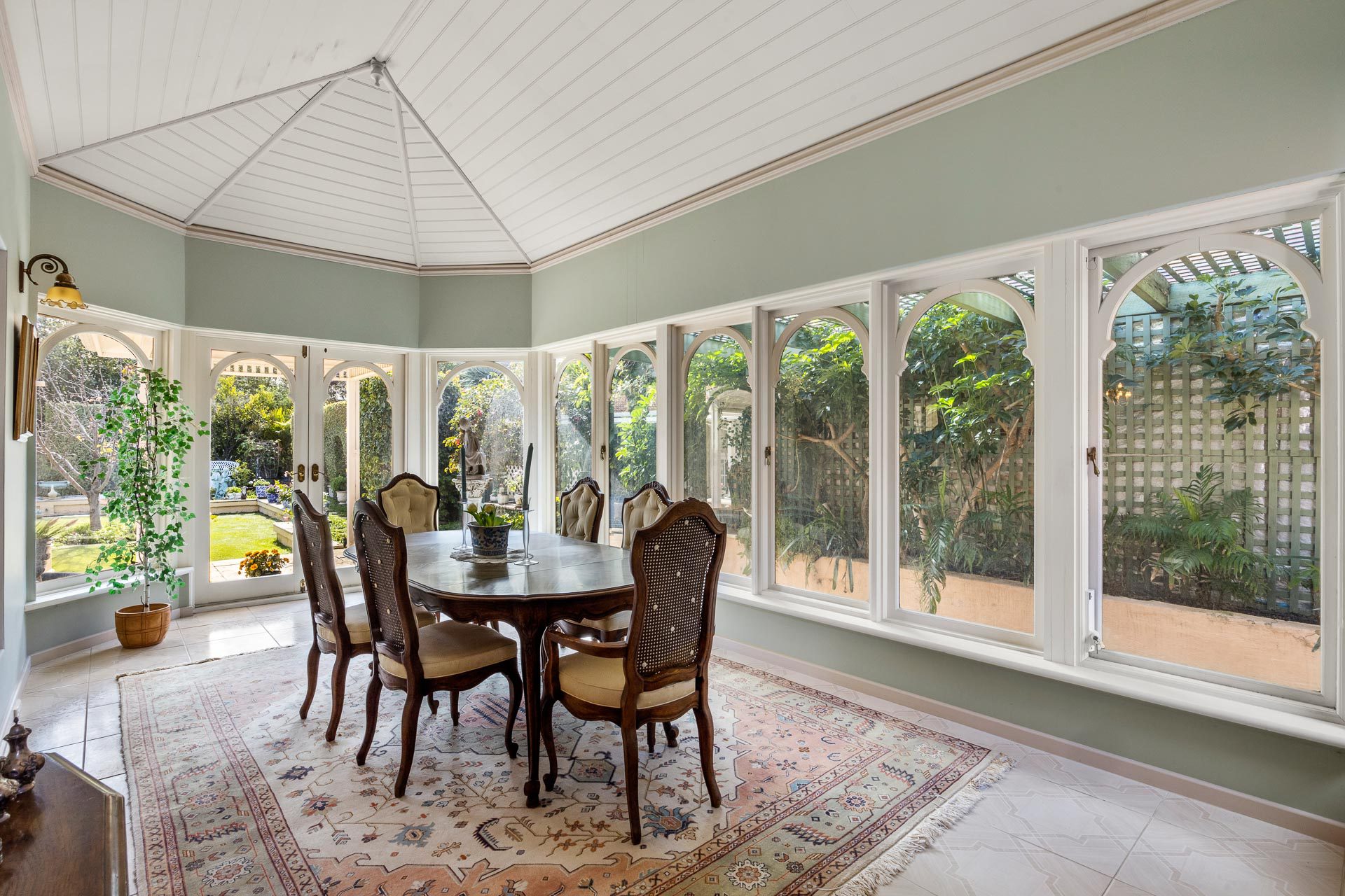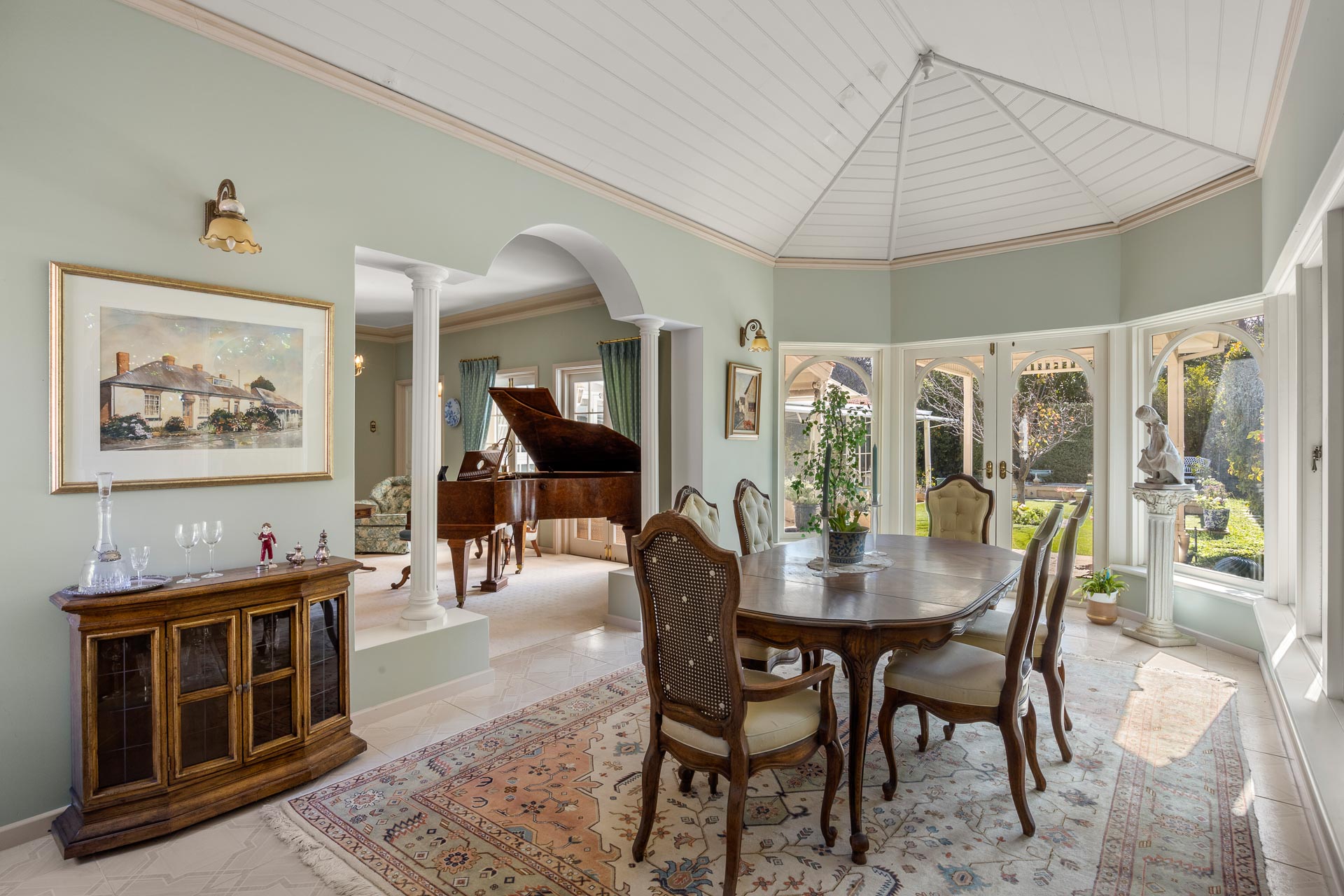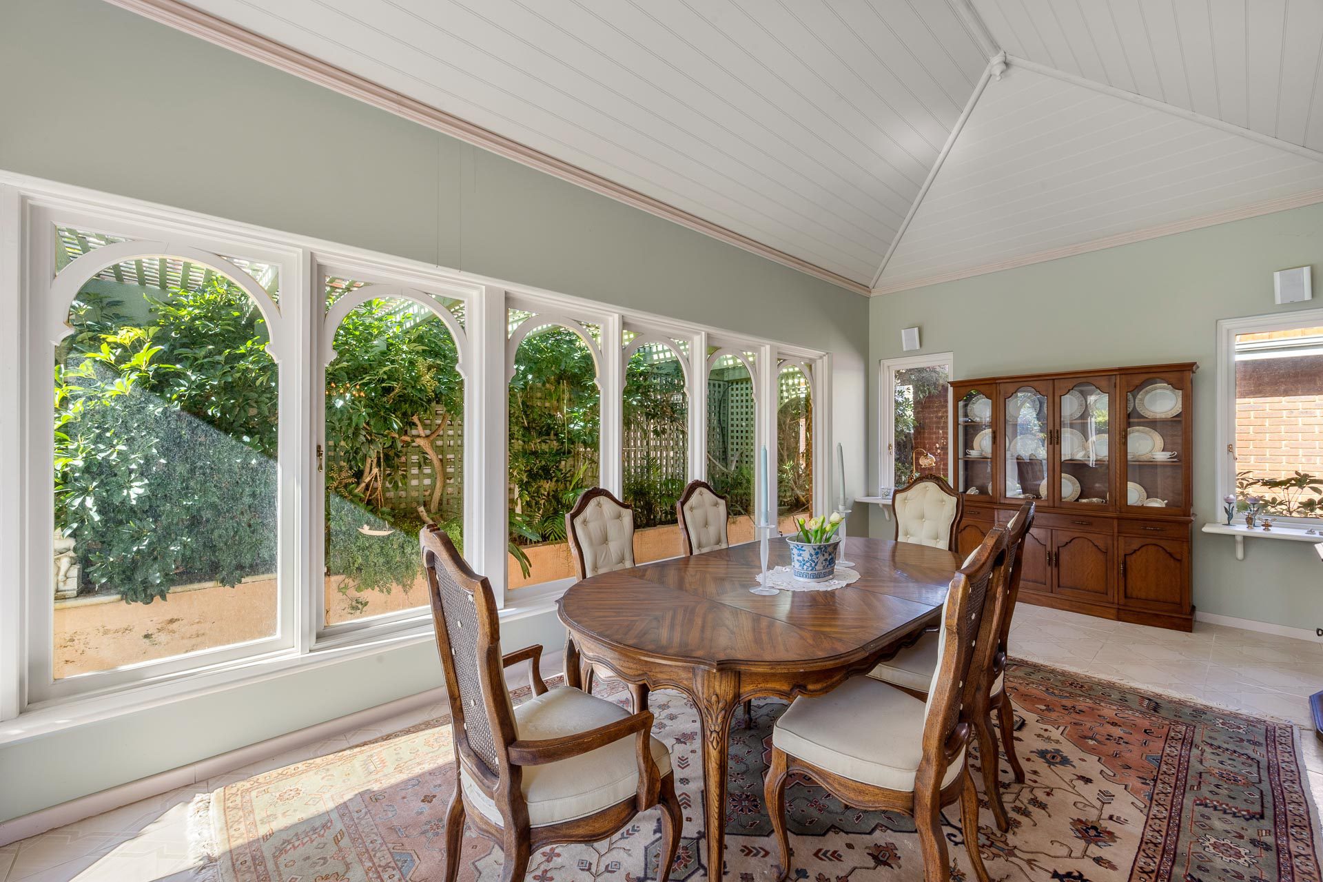 And when it comes time for special occasions, a hushed formal lounge room with large adjoining formal dining area, more like an English-style conservatory, thanks to an arched white timber ceiling and arched glass doors and windows to the garden, provide the ideal ambience for any event.