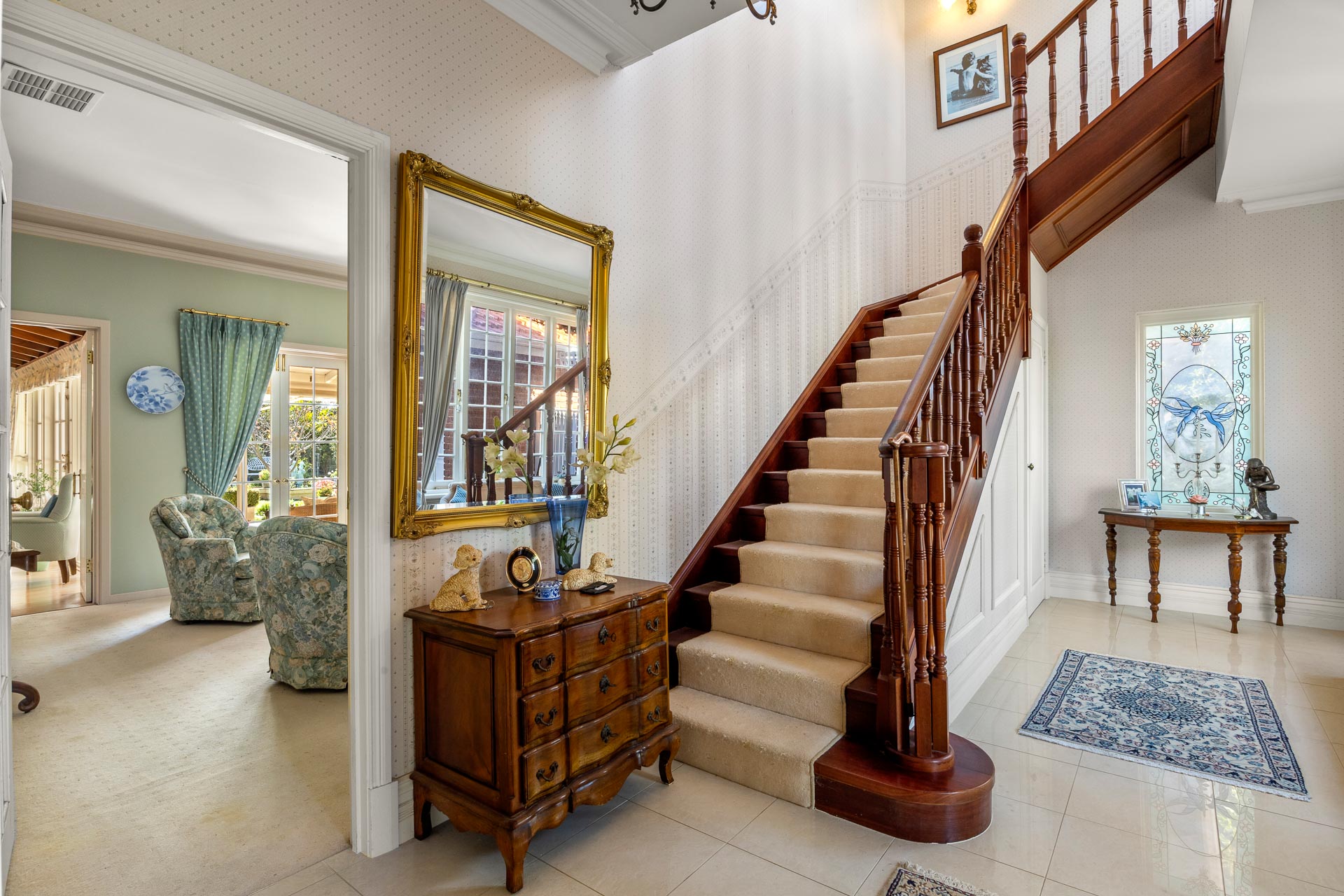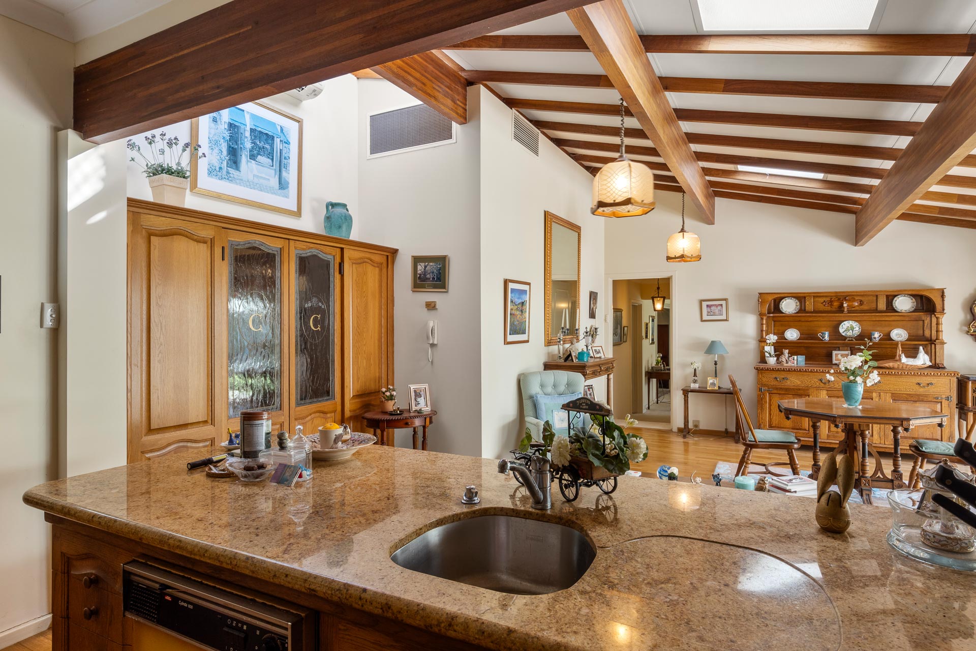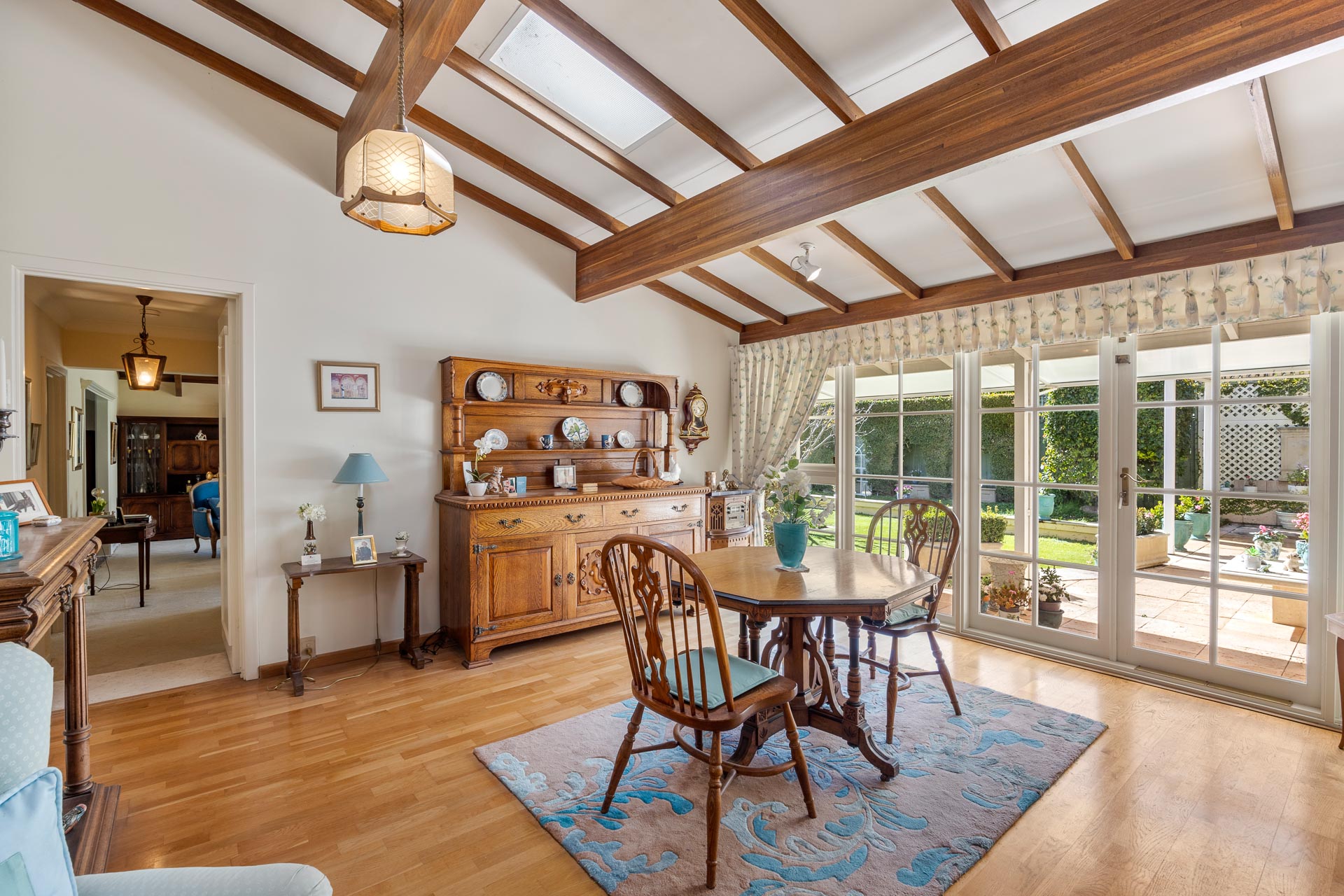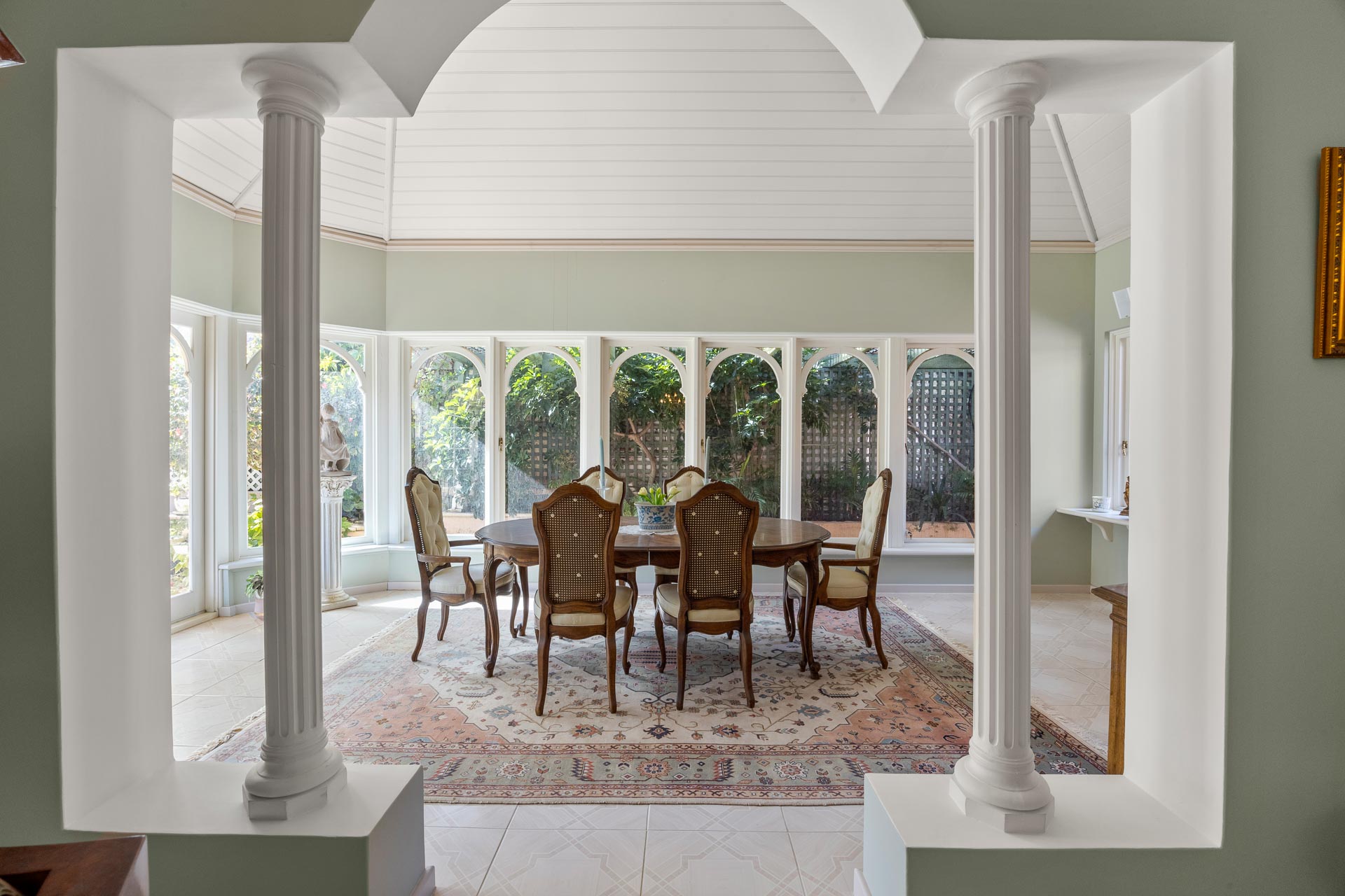 And when it comes time for special occasions, a hushed formal lounge room with large adjoining formal dining area, more like an English-style conservatory, thanks to an arched white timber ceiling and arched glass doors and windows to the garden, provide the ideal ambience for any event.