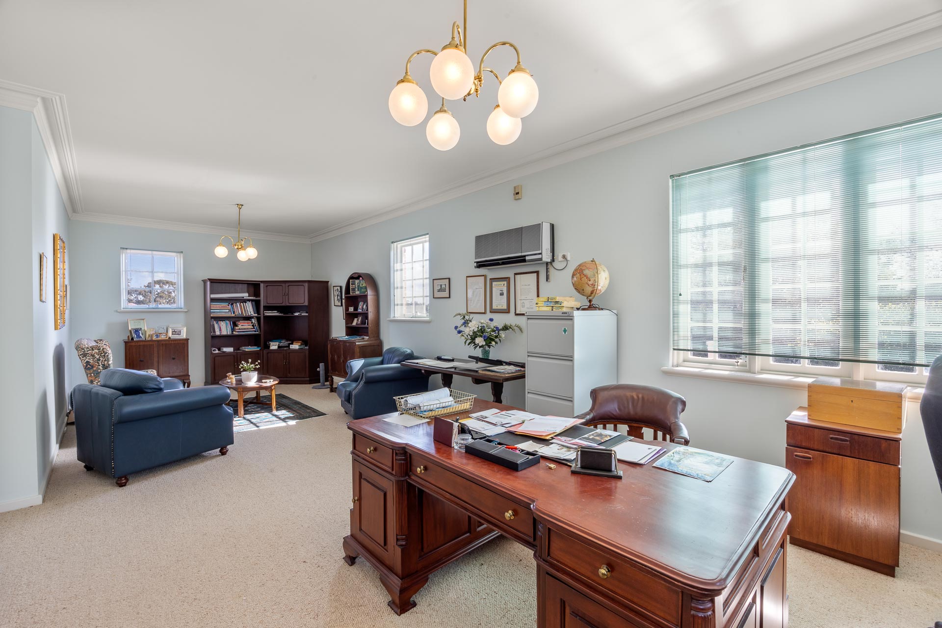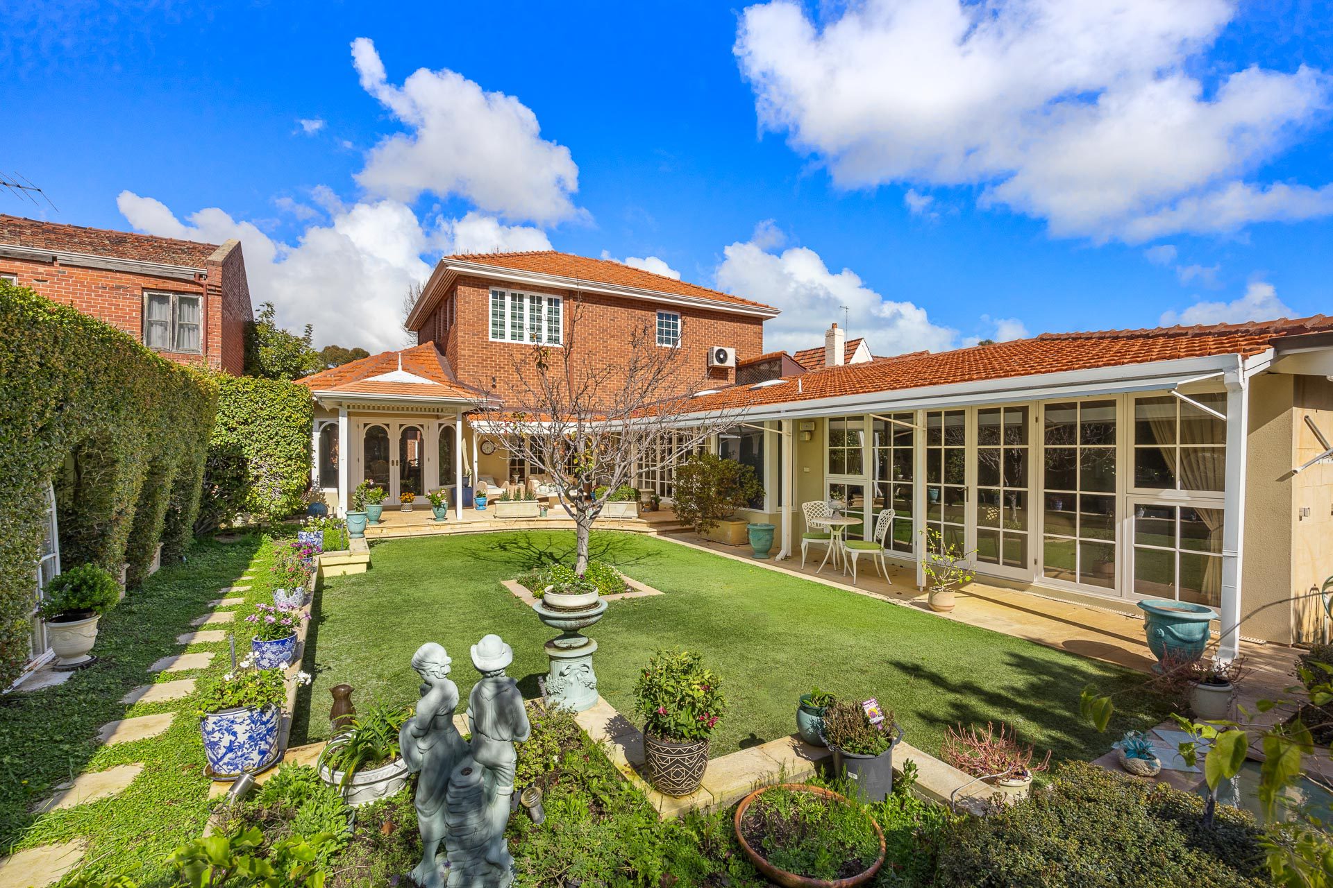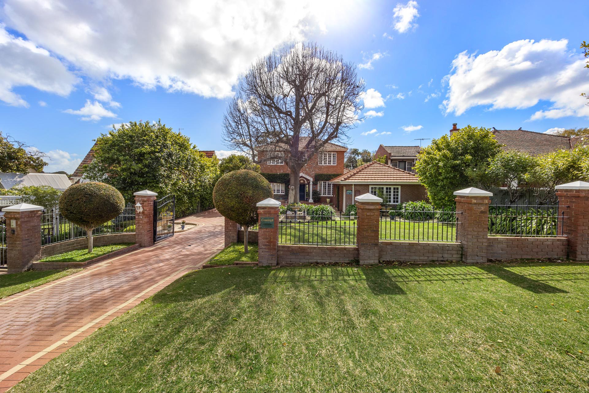 Welcome to Cranleigh, a stately, classical residence imbued with quality older style finishes and located on a leafy quarter acre block just minutes’ walk to the river. It enjoys a north facing backyard, mature trees, large and numerous living areas and a selection of 3 large bedrooms, 2 bathrooms, with ample space to repurpose and redesign parts of the home into more bedrooms and bathrooms, as you require. The current owner design the house with an emphasis on having different zones for entertaining and living, that all looked into the garden and took advantage of the natural light, north and east orientation, and the full 1012sqm of land. It has a 3 car lock up garage and all sits behind a fully secure perimeter fence with electronic gates.