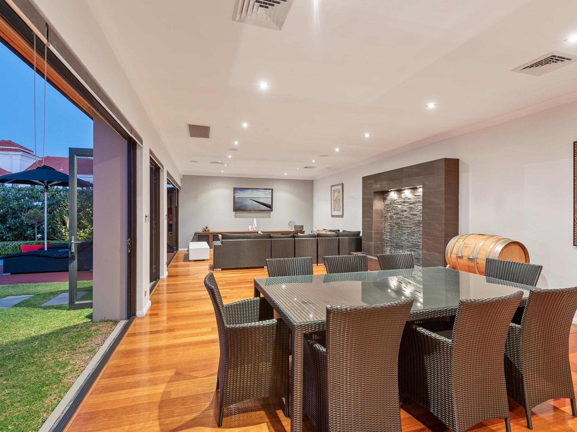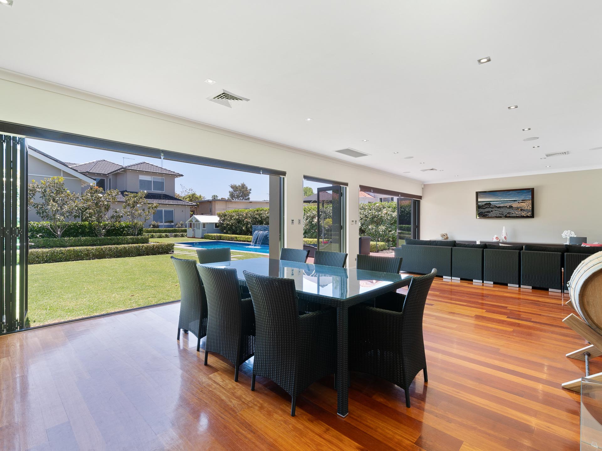 • Full designer BBQ kitchen including twin wine fridges, teppanyaki grill, wok burner, Bosch dishwasher and rangehood