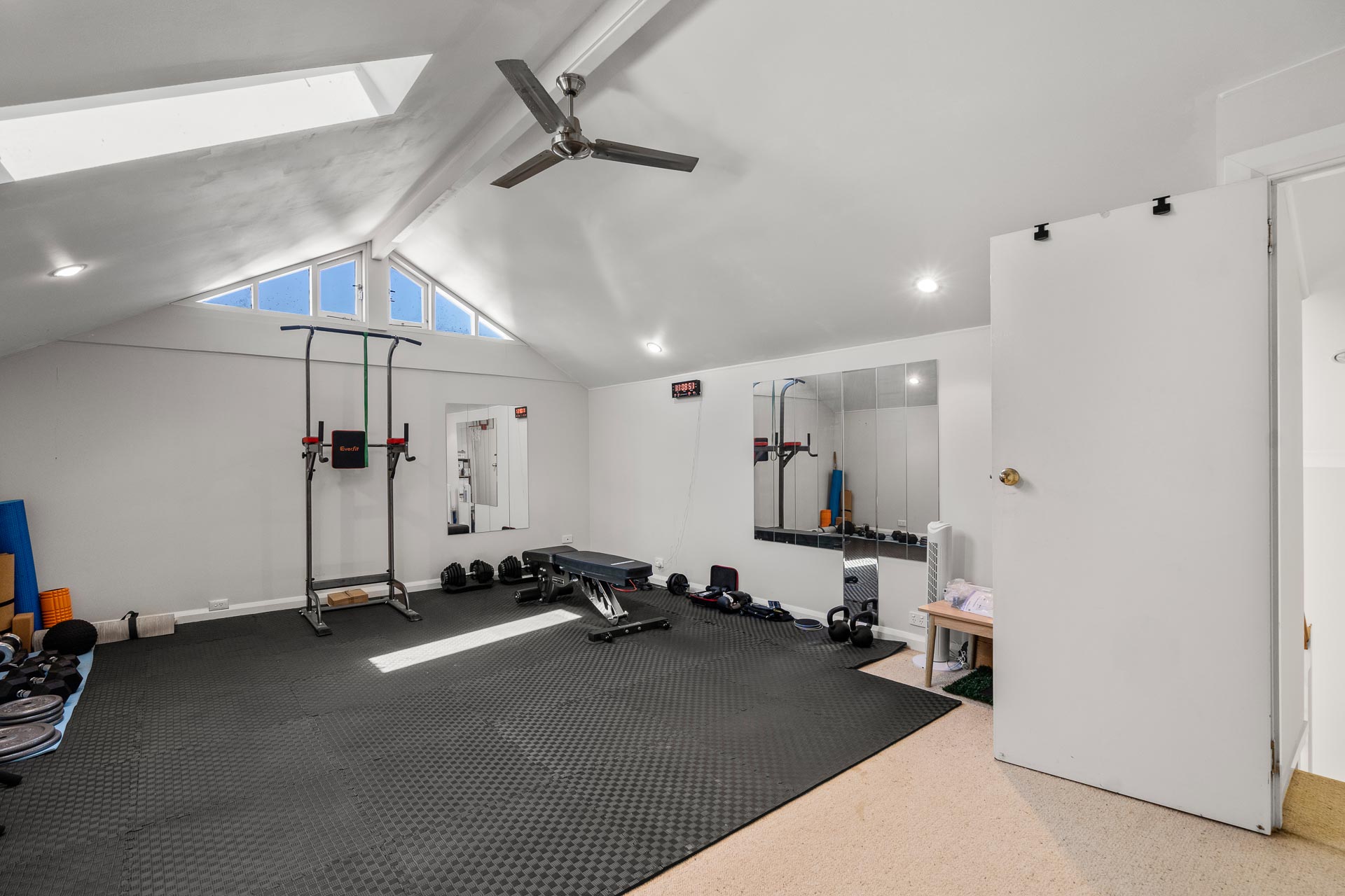 Stairs accessed via the open plan living zone take you up to a large loft room with split system AC. Currently used as a gym but is versatile enough to be another bedroom, playroom, media room, studio or study.