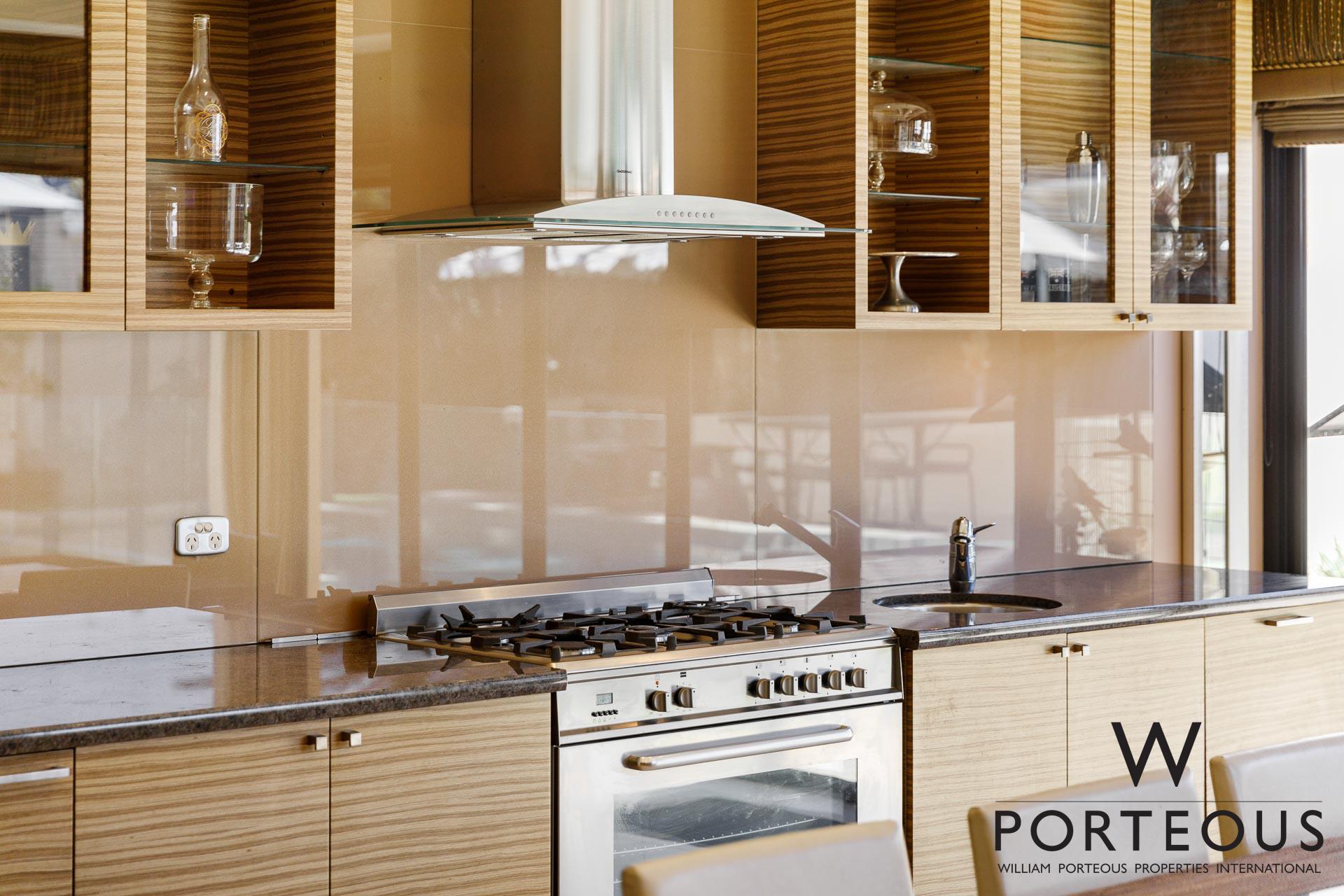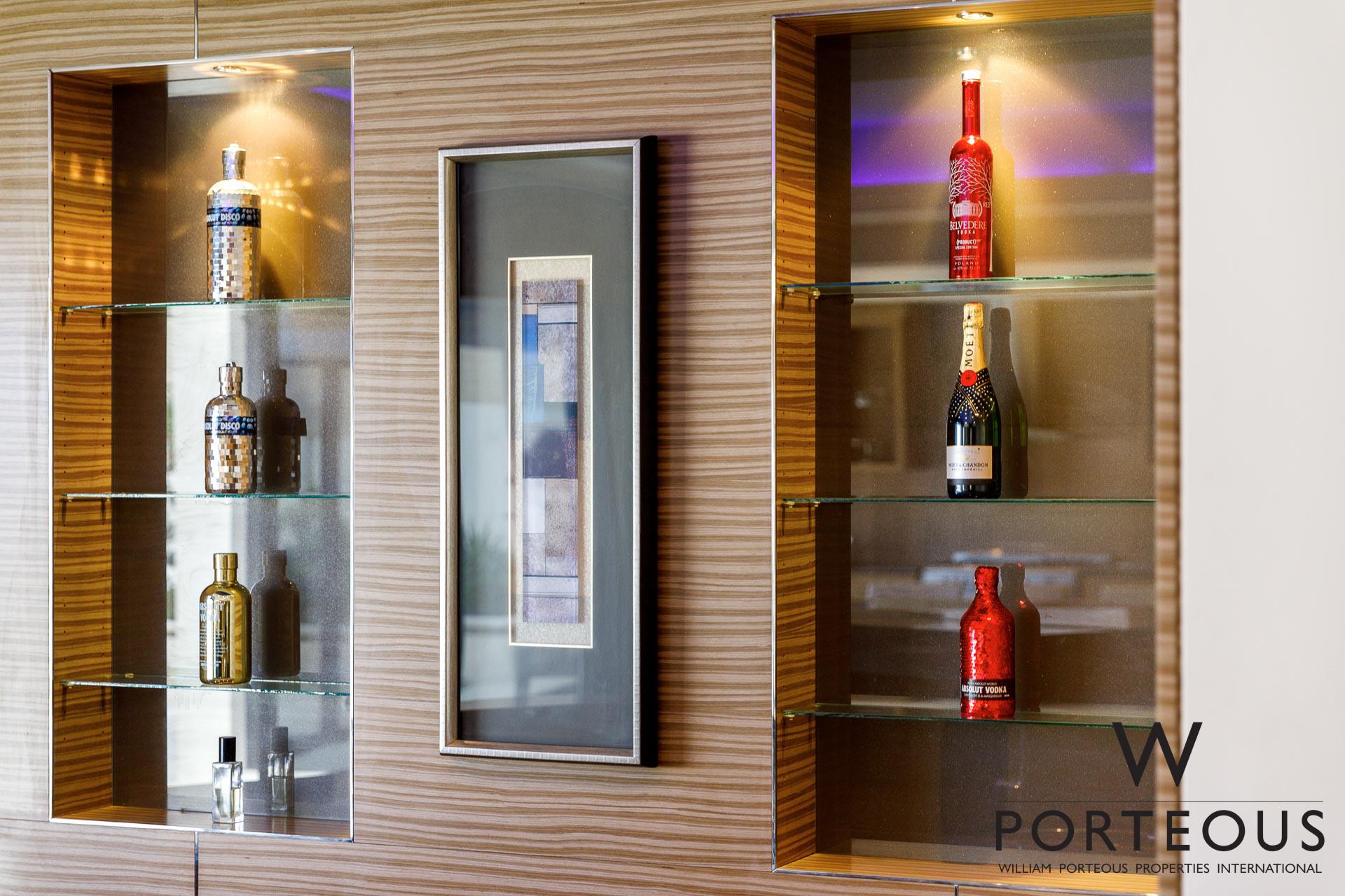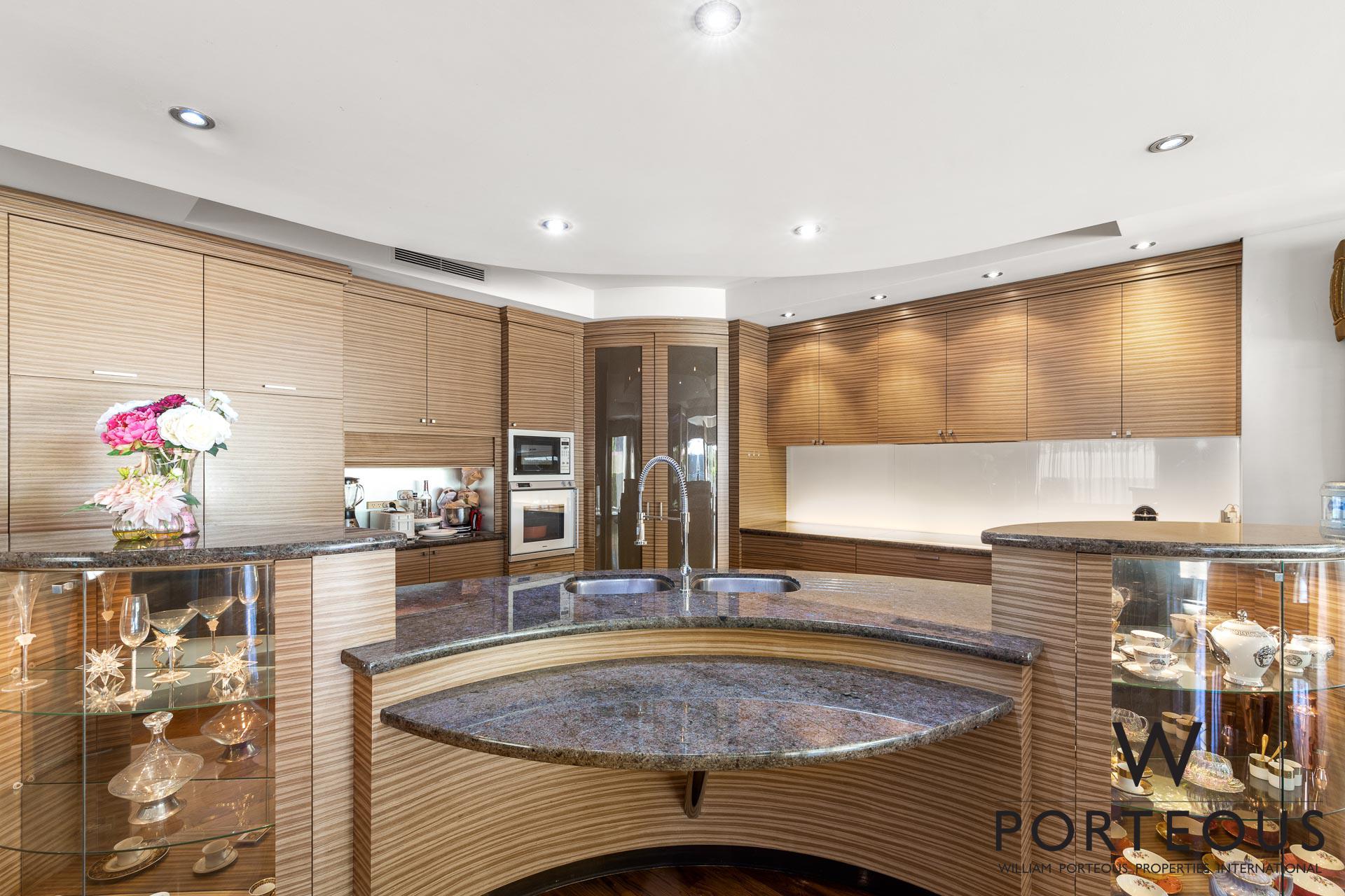 • Custom crafted luxury kitchen with Gaggenau appliances, integrated fridge/freezer, 2 dishwashers, glass fronted display cabinetry, walk-in pantry