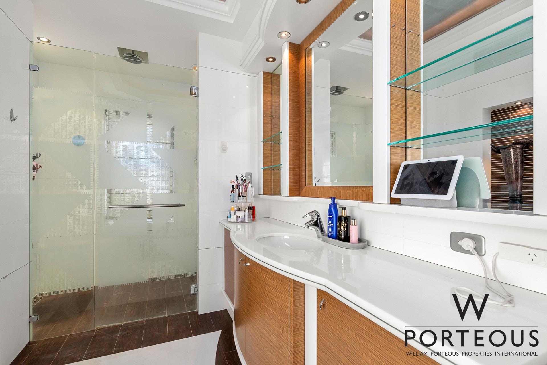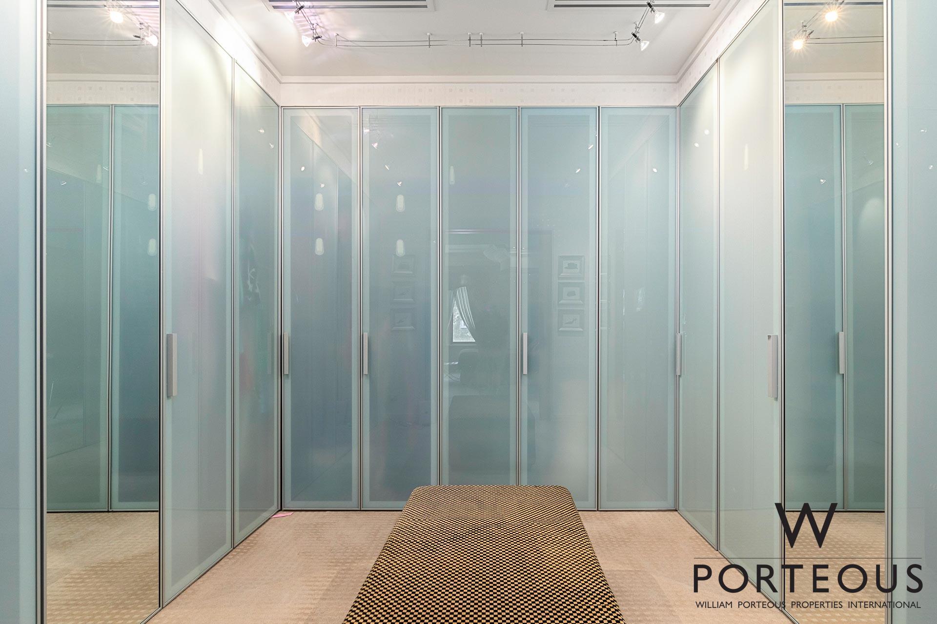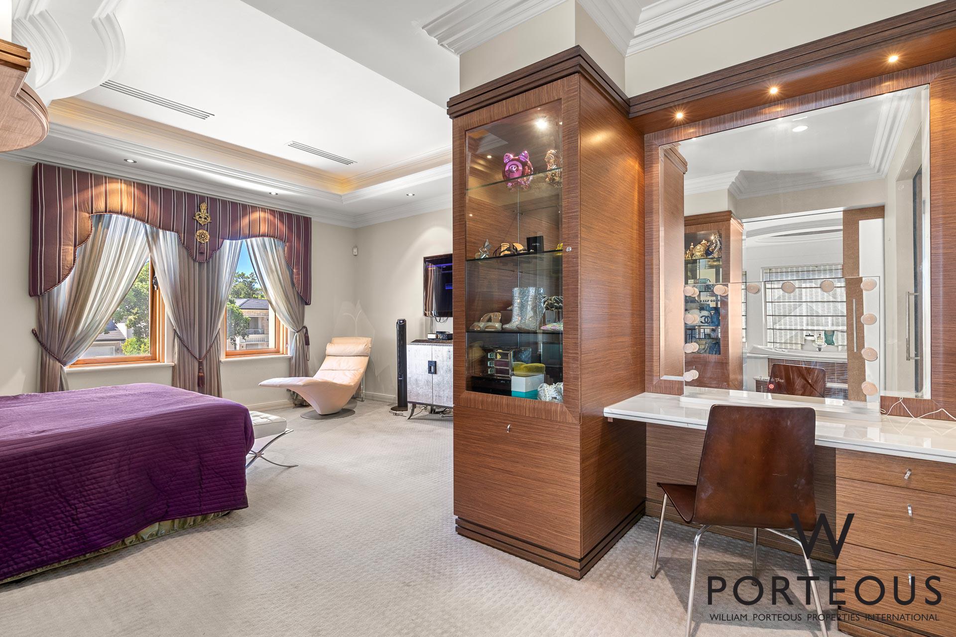 The second storey is home to the main bedroom suite, with bespoke glass fronted cabinetry, divine dressing room, makeup station, and opulent ensuite bathroom boasting twin vanities, bath, separate shower and W.C.