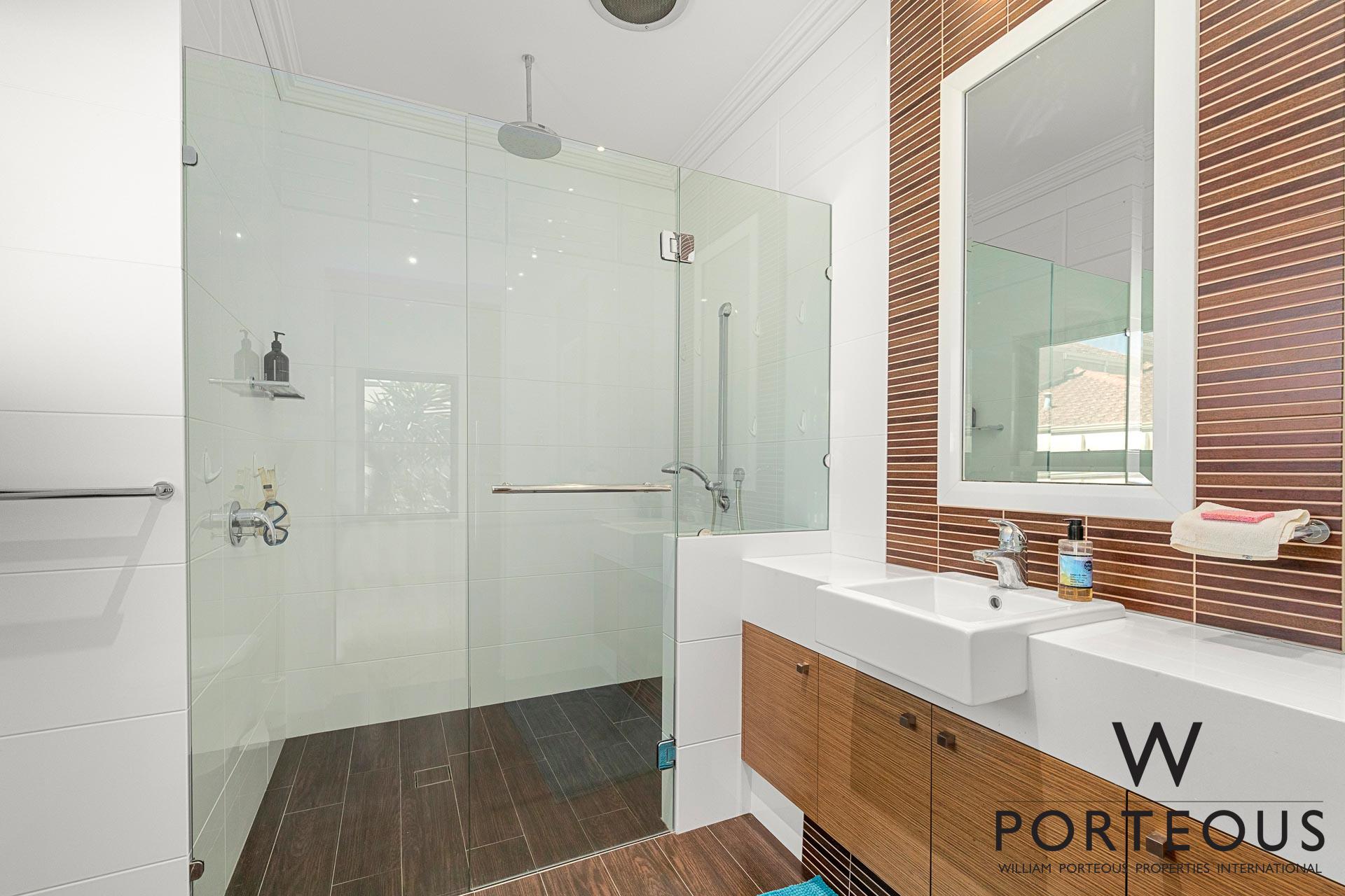 A ground floor guest suite with walk in robe and ensuite bathroom is a quiet, private retreat overlooking a tranquil courtyard.