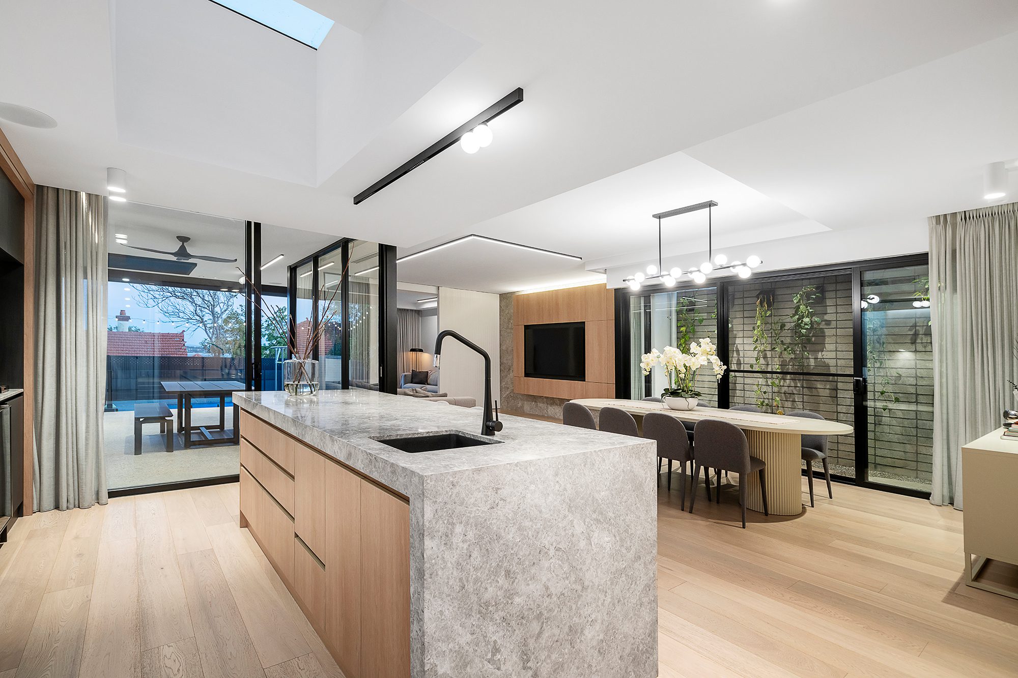 With a fantastic layout offering 4 bedrooms, all ensuited (x4), a lift to compliment the easily navigated staircase, a perfect-sized pool, a study, and a brilliant open plan kitchen living and dining area opening to a superb alfresco BBQ and outdoor entertainment zone. There is a very cleverly designed sliding wall in the main living area that enables you to split the room and create a separate space overlooking the pool, as and when you wish.