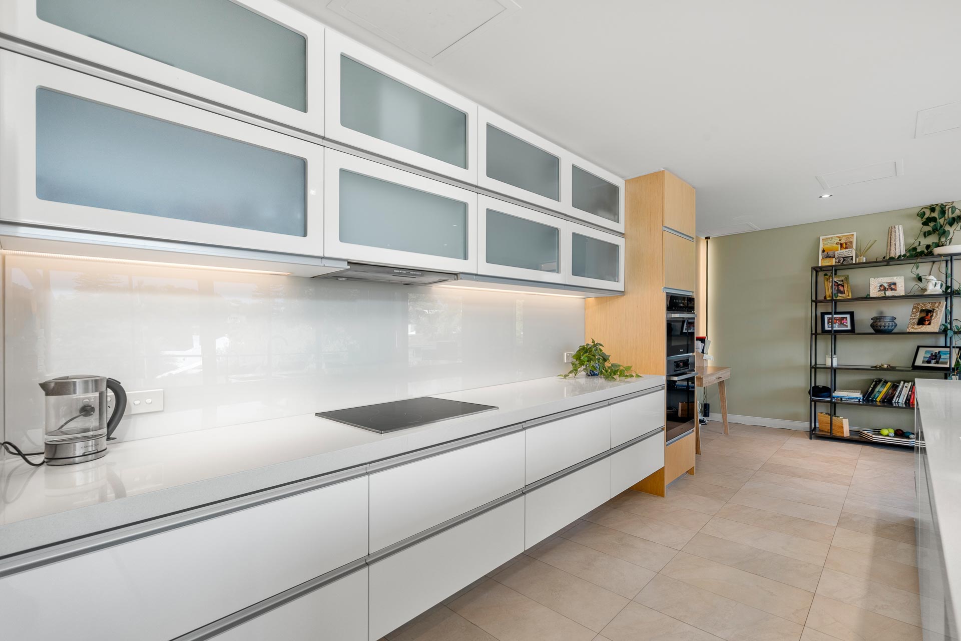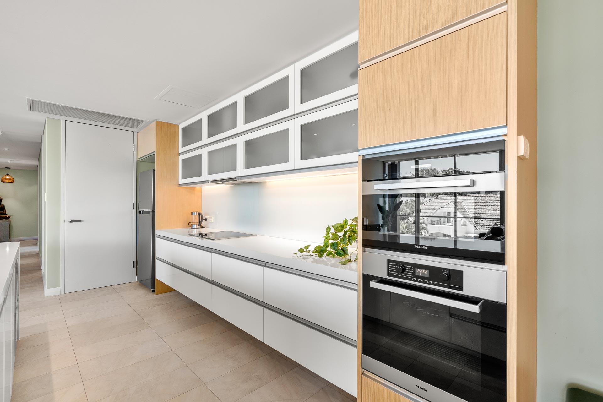 Within the well-appointed kitchen, find a suite of Miele appliances, extensive Cesar stone bench tops and breakfast bar, impressive amounts of storage, double drawer dishwasher, and a walk-in pantry.