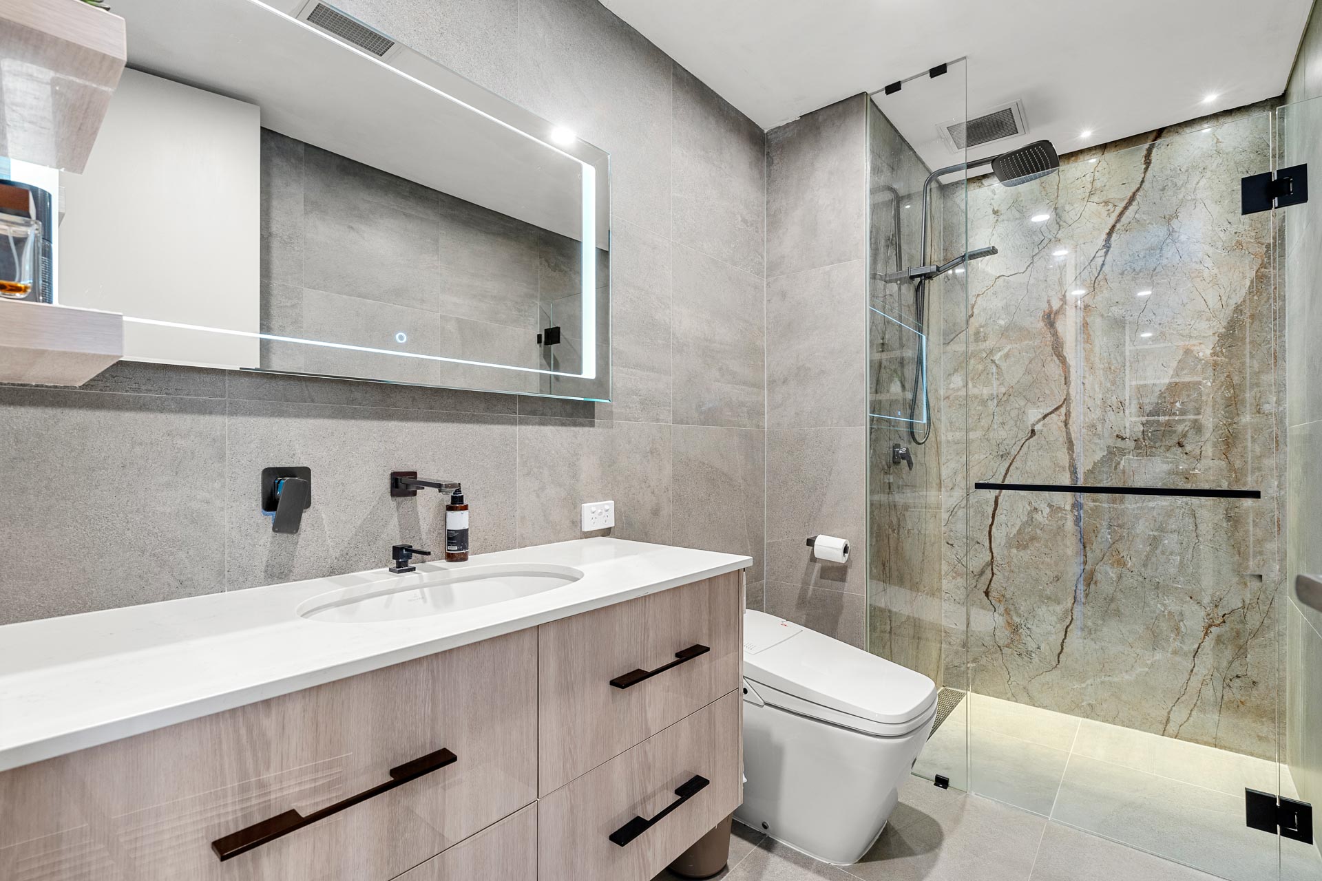 Ensuring the practicalities continue, this apartment also boasts a separate laundry with ample storage, a large hallway linen cabinet and throughout, and ducted reverse cycle Air-conditioning. There is a dedicated split reverse cycle A.C system in the 3rd bedroom.