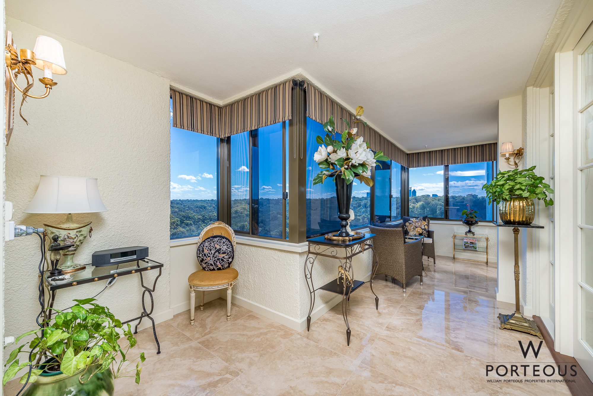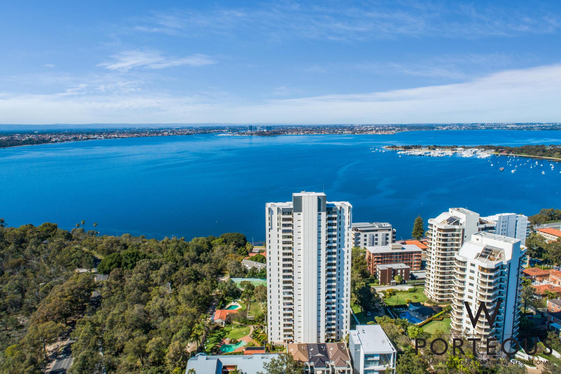 Stunningly situated high up on the 12th floor of the secure “Strathearn” complex, and boasting breathtaking Swan River and majestic tree-lined views from either side, this elegant and spacious, luxuriously renovated and modernised with no expense spared, 190sqm, 3 bedroom 2 bathroom, 2 car garaging apartment, is an absolute gem! Enjoy a unique and privileged lifestyle on the edge of iconic Kings Park and the Swan River.