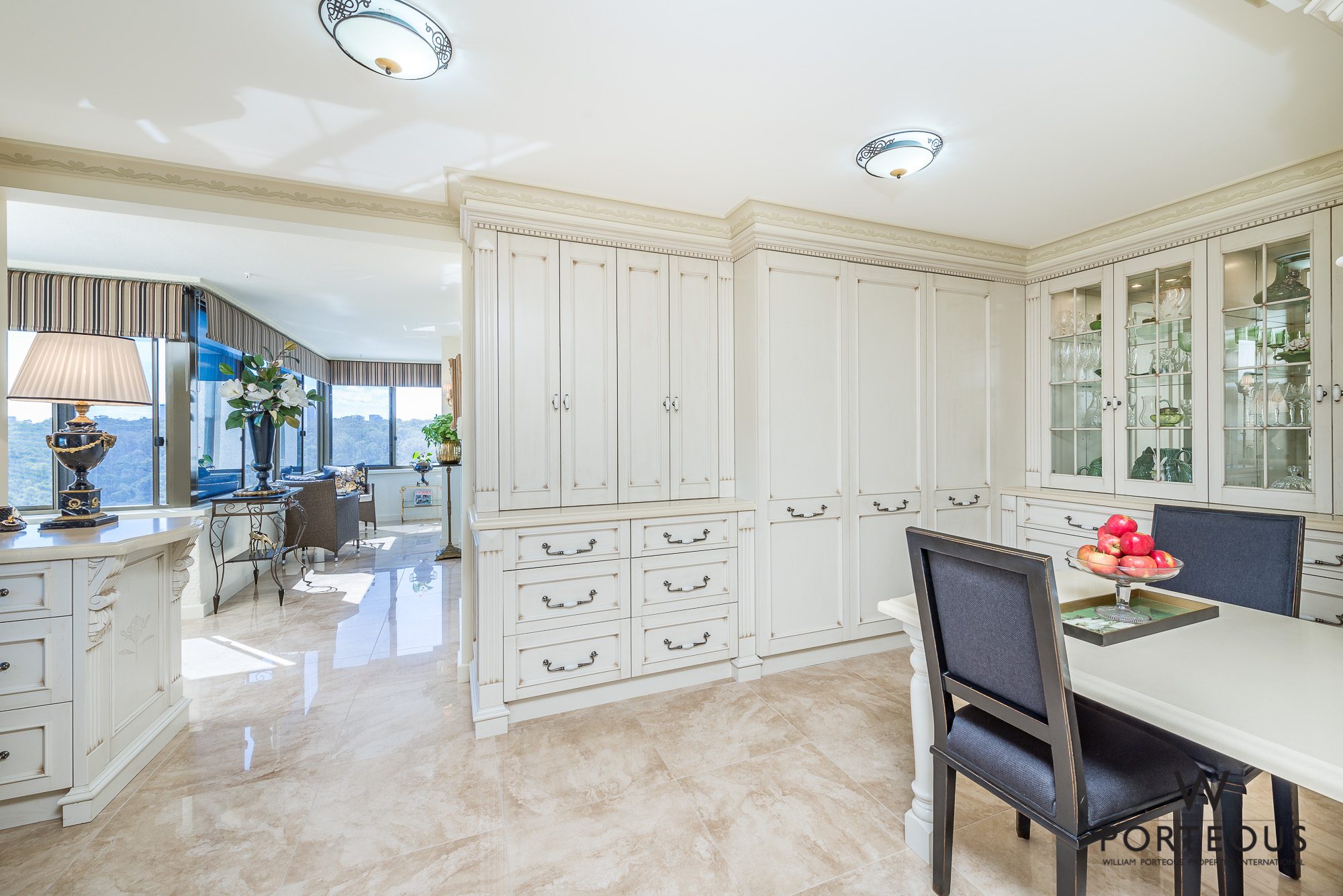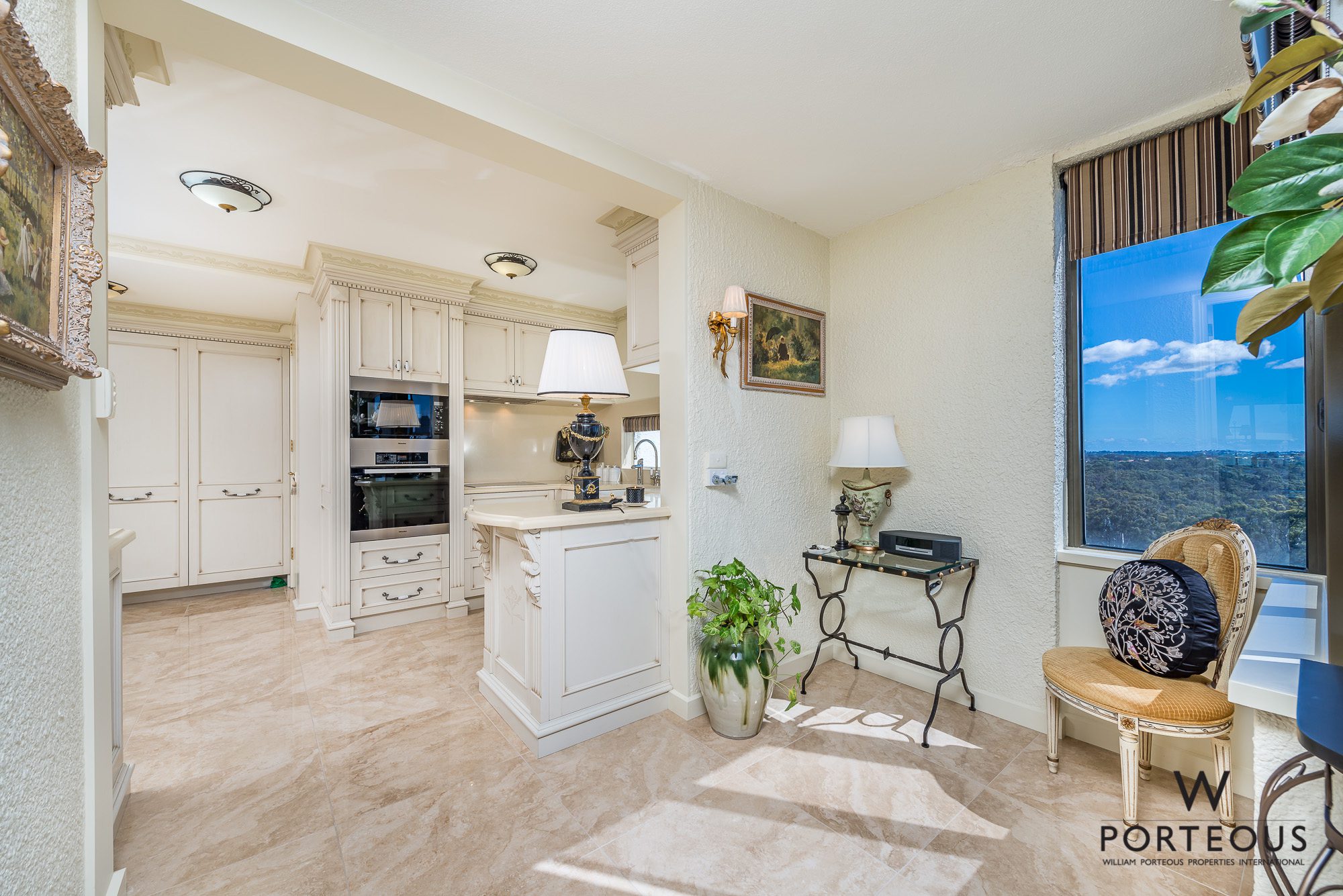 This apartment has not only been finished to the highest specification, the floor plan has also been modified to create a truly unique home. The dining room connects to a beautifully-tiled sunroom and kitchen/meals area through a set of gorgeous double French doors, to reveal city-skyline views over the top of the awesome, seemingly endless Kings Park greenery. An abundance of northern light pours into the home from this side. Part of the comprehensive renovations included premium new double glassing on the northern side.