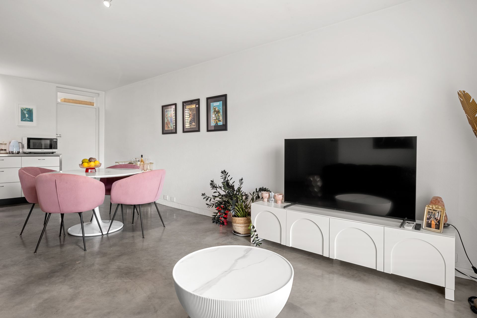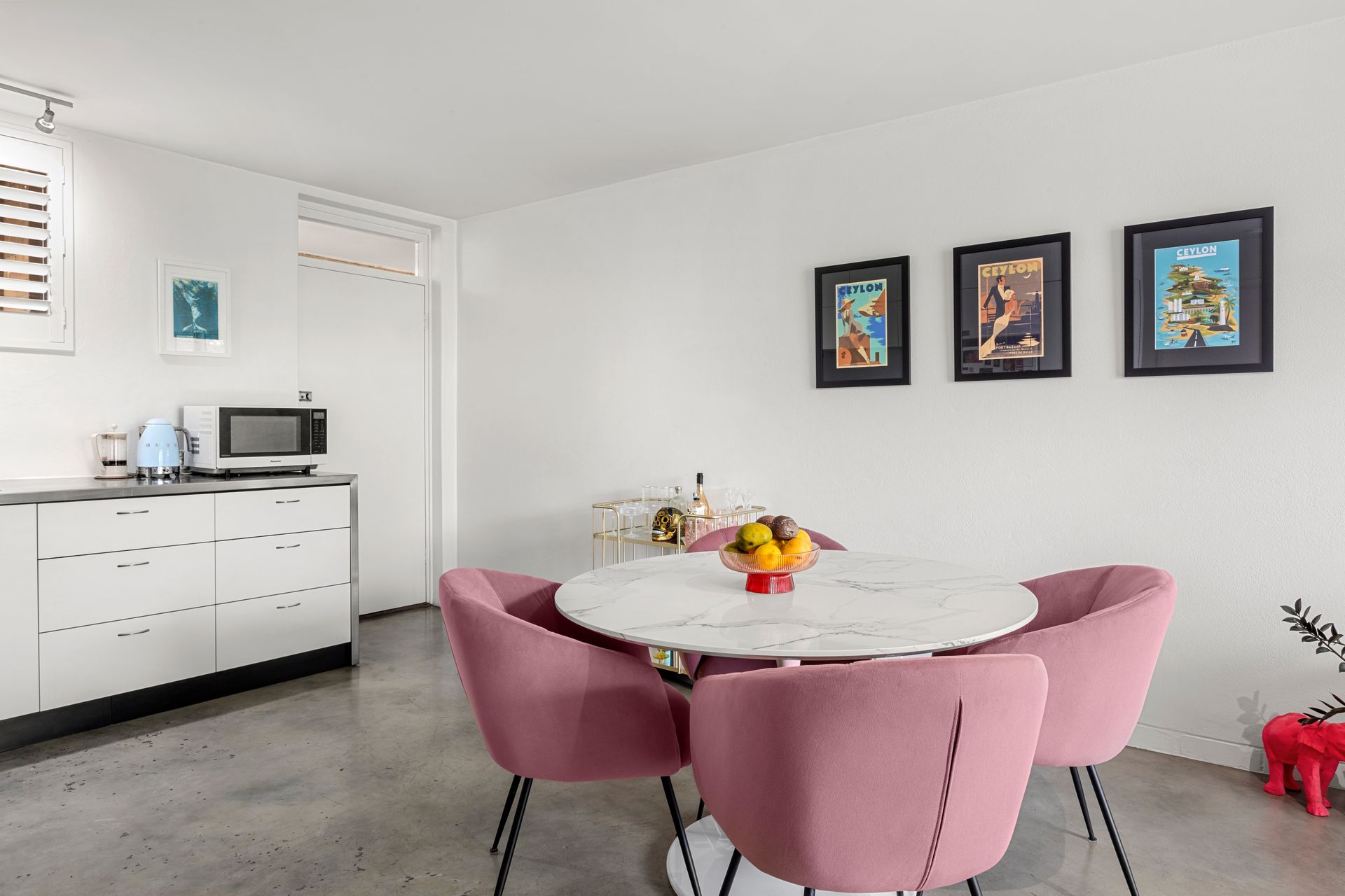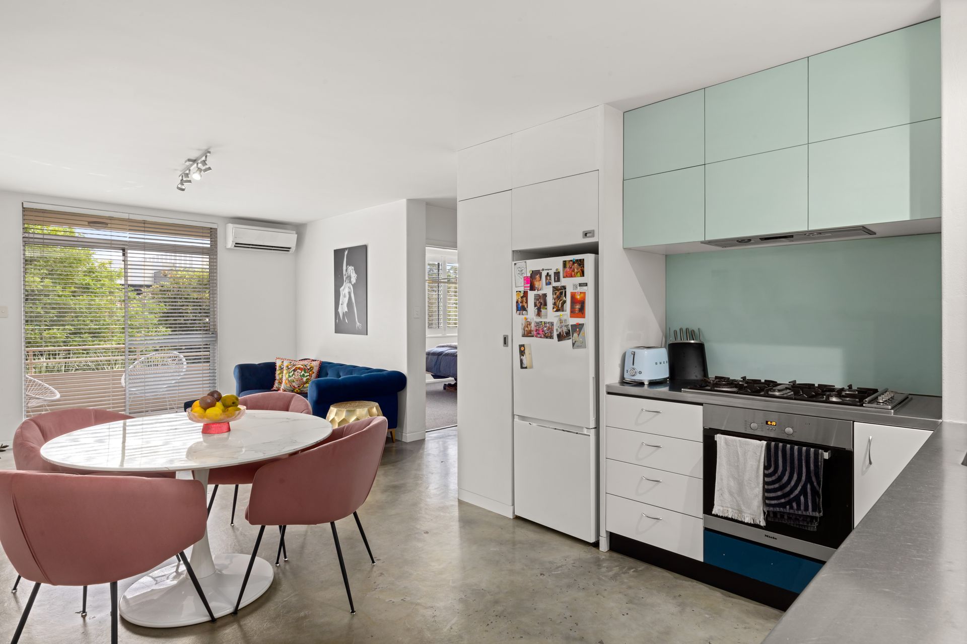 It even enjoys the luxury of its very own integrated laundry within the bathroom, eliminating the need to use the shared facilities at ground level. The cleverly-revamped and light-filled wet area makes the most of the wall and floor space on offer, boasting a stone vanity, a separate stone wash trough, a rain shower and toilet.